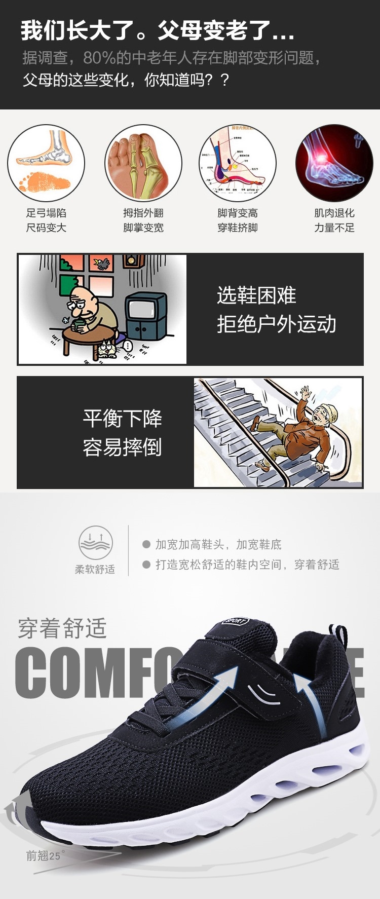 翼途(1808)情侣老人健步鞋35-44, 价格55