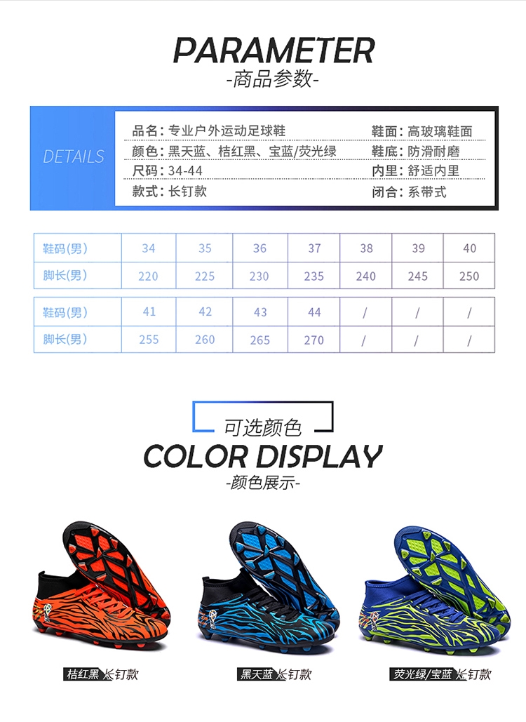 | 商品名称:协美19889#足球鞋长钉 34-44码数 P38 元 |