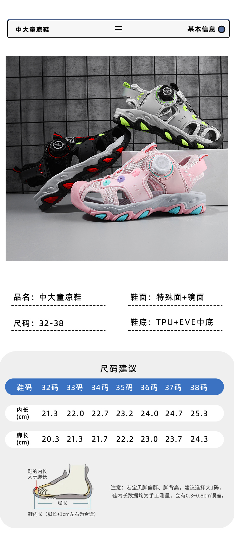 | 商品名称:2023夏季男女童包头凉鞋尺码32-38 |