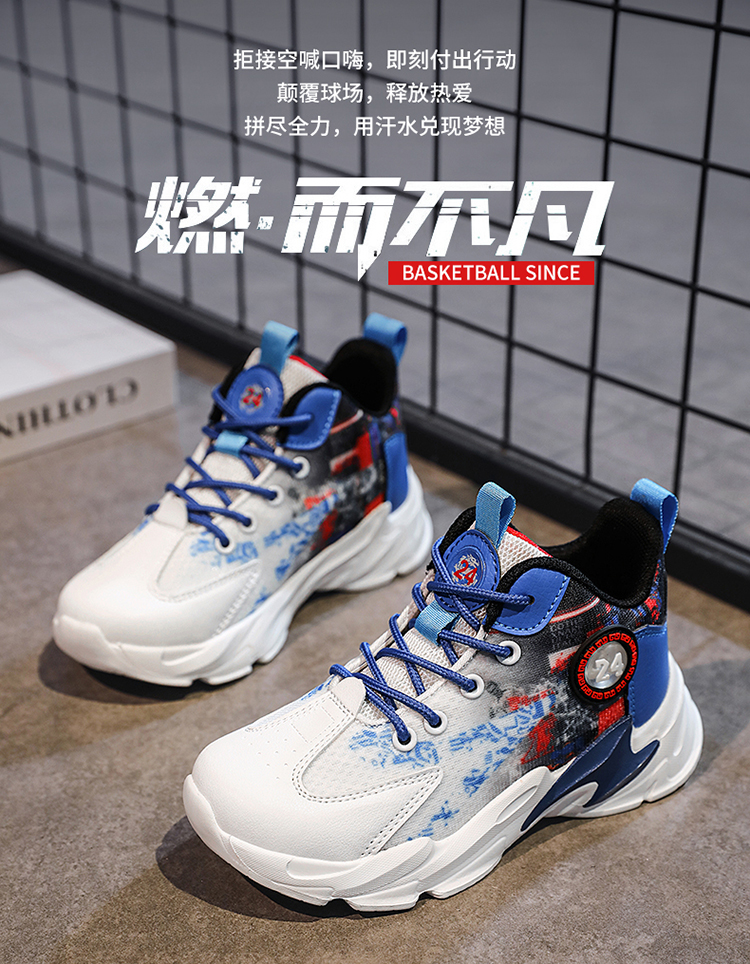 | 商品名称:一件代发新款旋转扣网面儿童篮球鞋软底防滑跑步鞋 |