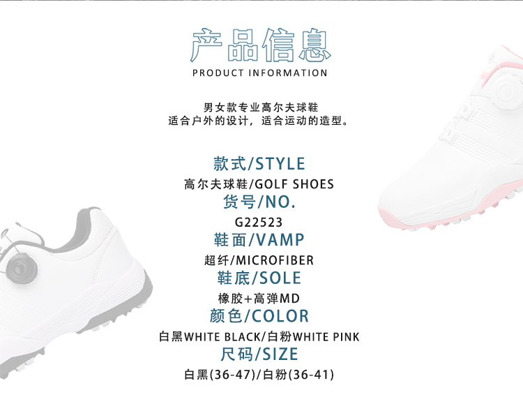 | 商品名称:G22523高尔夫鞋情侣鞋36-46粉色36-40,P160 |