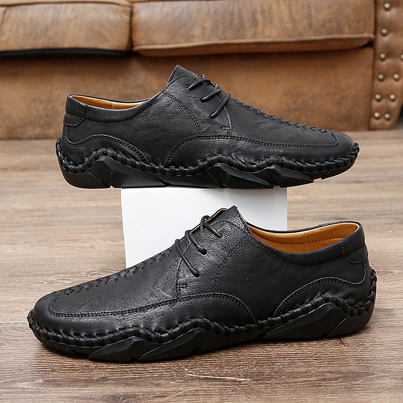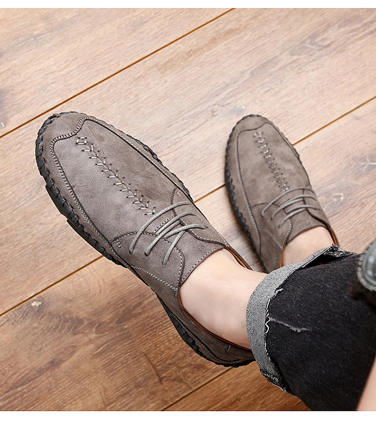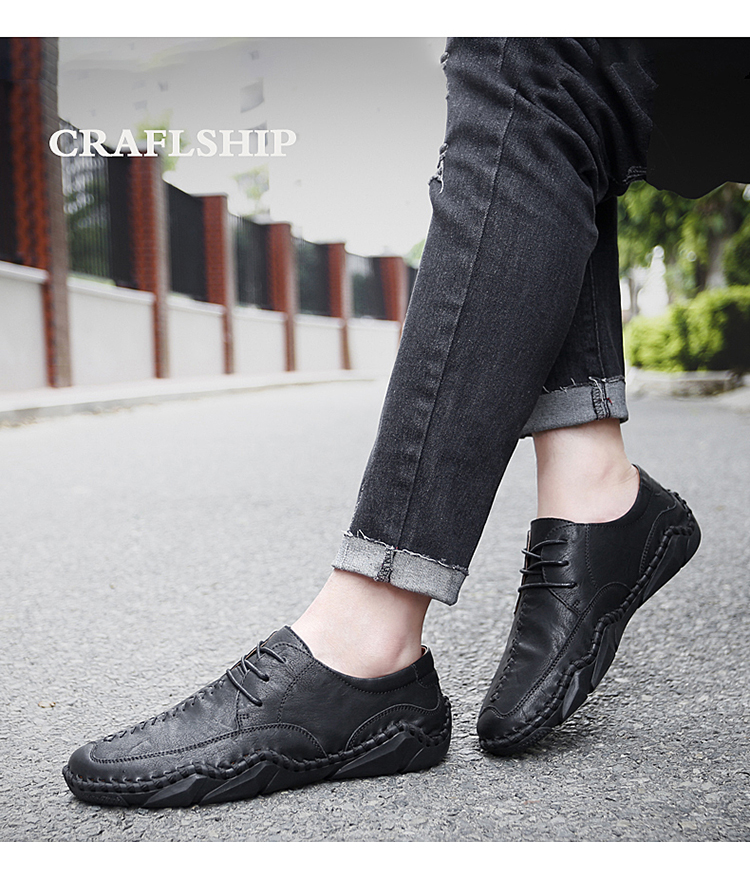 兴凯达跨境38-48大码手工八爪鱼头层牛皮休闲鞋男单鞋