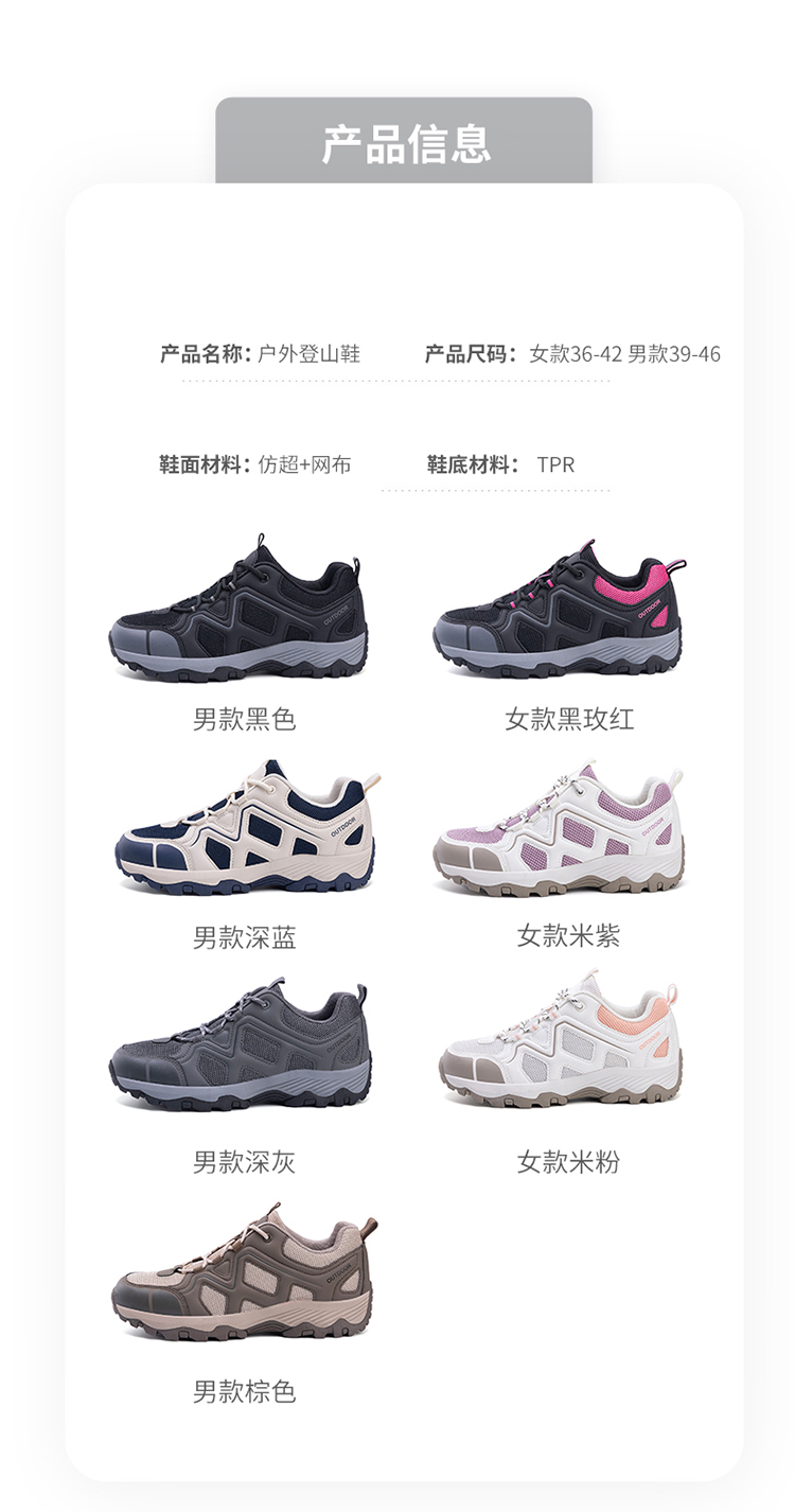 | 商品名称:福欣新款户外登山鞋情侣款透气网四季鞋批发分销 |