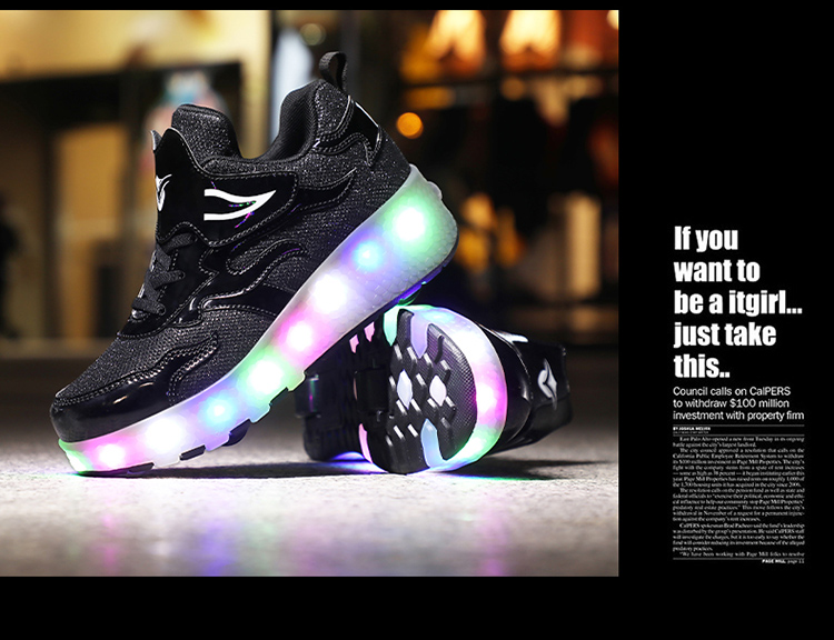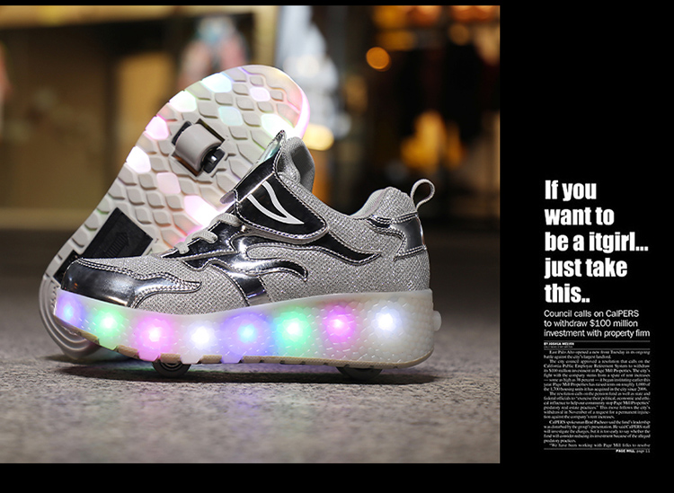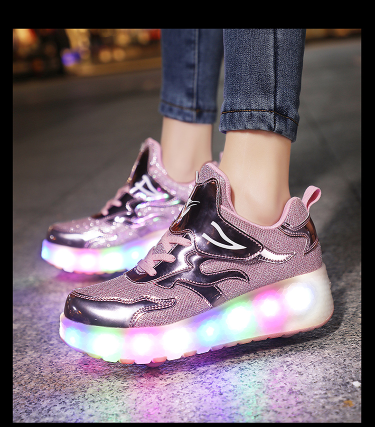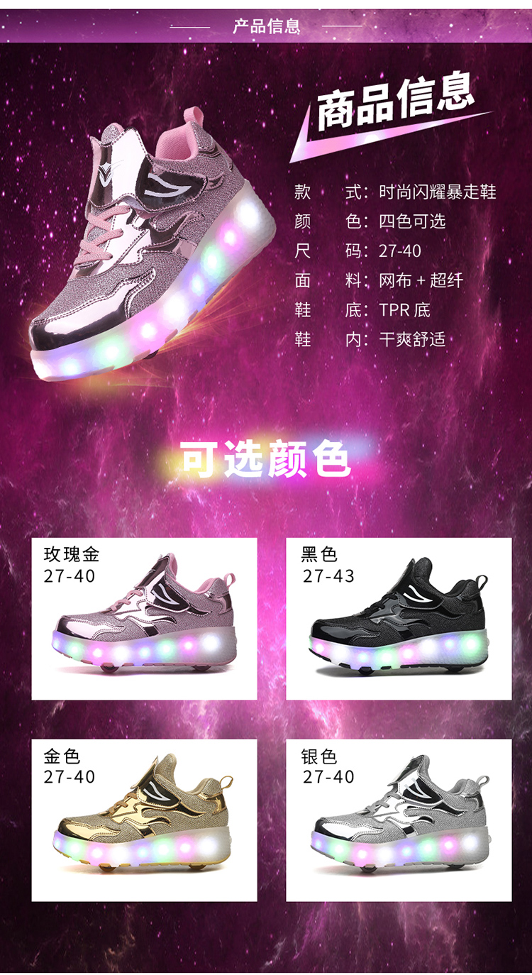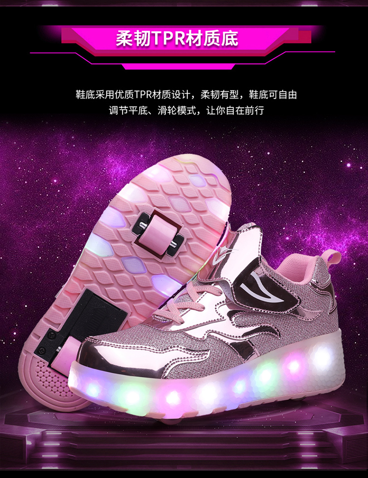 | 商品名称:酷飞E67跨境外贸暴走鞋双轮儿童LED灯充电款滑轮鞋 |