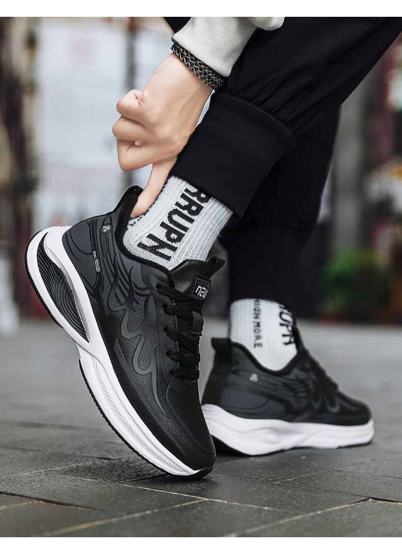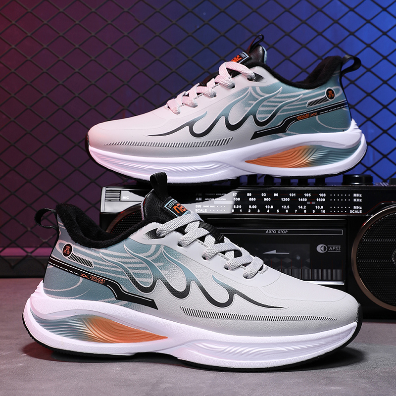 | 商品名称:运动男鞋2023冬季新款加绒爆米花减震超轻皮面软底初高中生跑 |