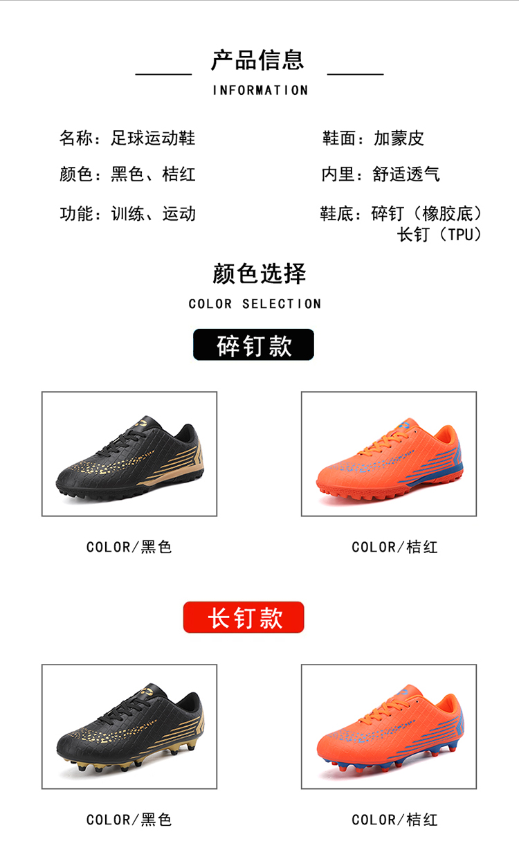 | 商品名称:酷飞26036学校训练低帮足球鞋长钉短钉跨境32-45 |