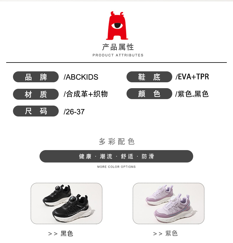| 商品名称:ABC2024春季新款儿童中大童旋钮扣跑步鞋舒适透气女童男童 |