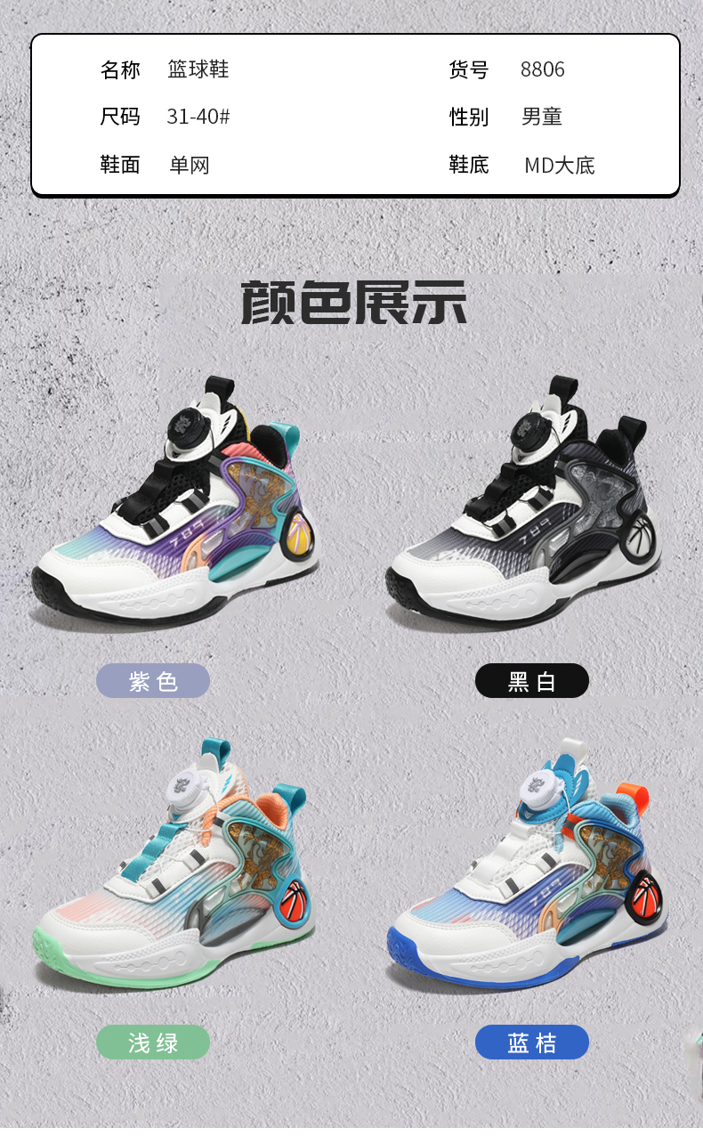 | 商品名称:恒溢8806夏季篮球鞋单网气孔31-40码可分销可代发P46 |