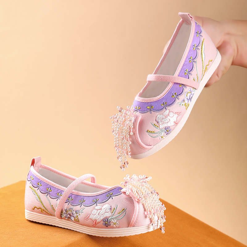 | 商品名称:悦足A93 新款汉服鞋女童绣花鞋丝光+棉麻+MD25-36 |