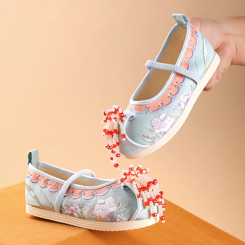 悦足A93 新款汉服鞋女童绣花鞋丝光+棉麻+MD25-36