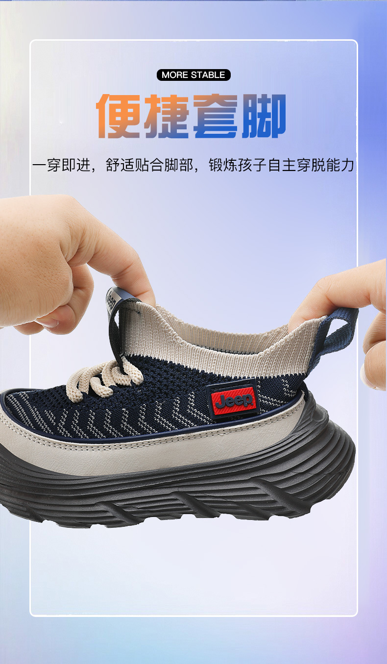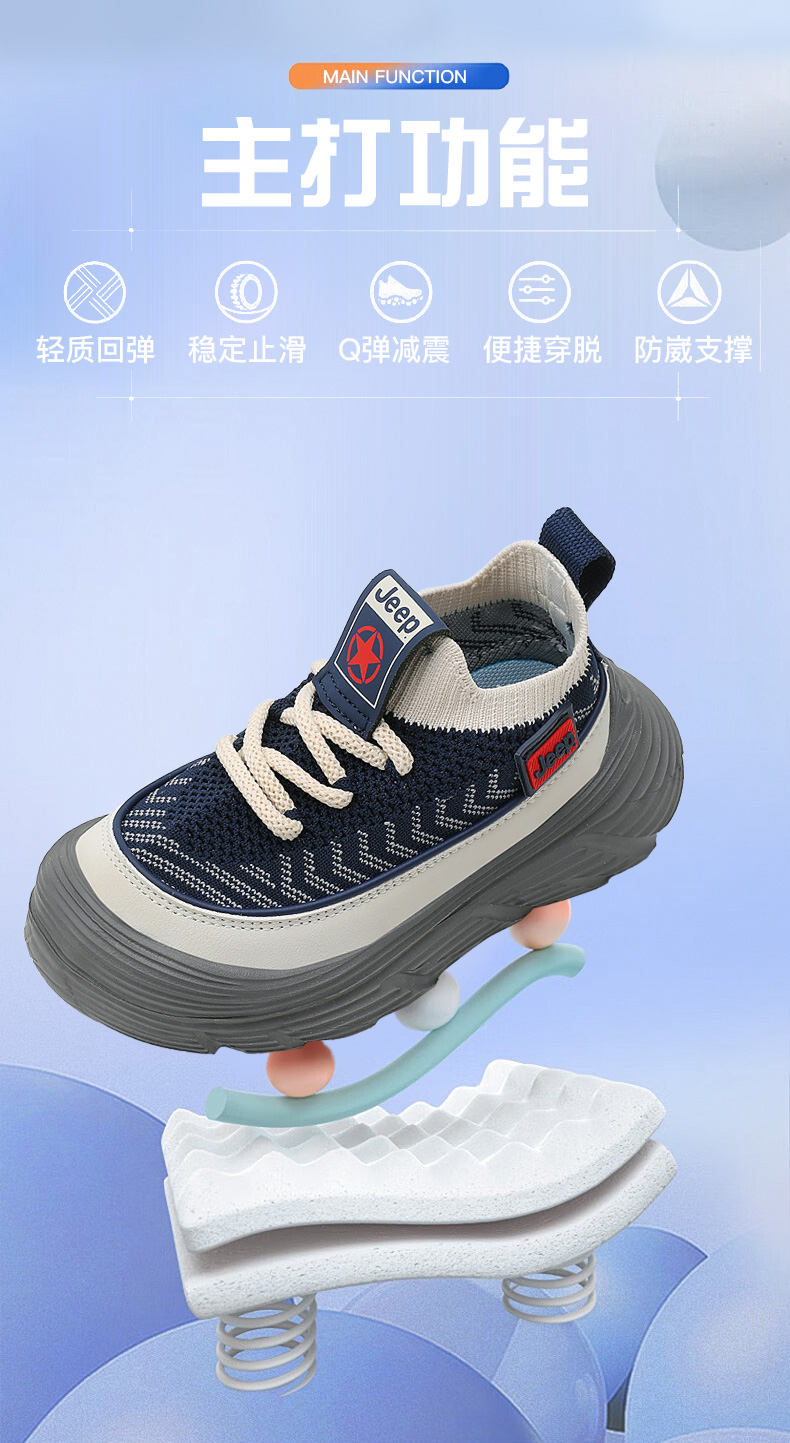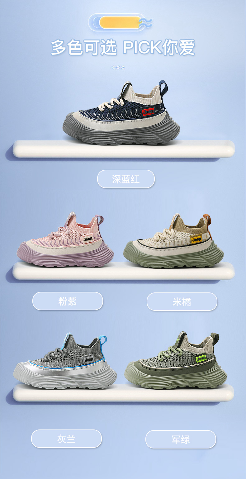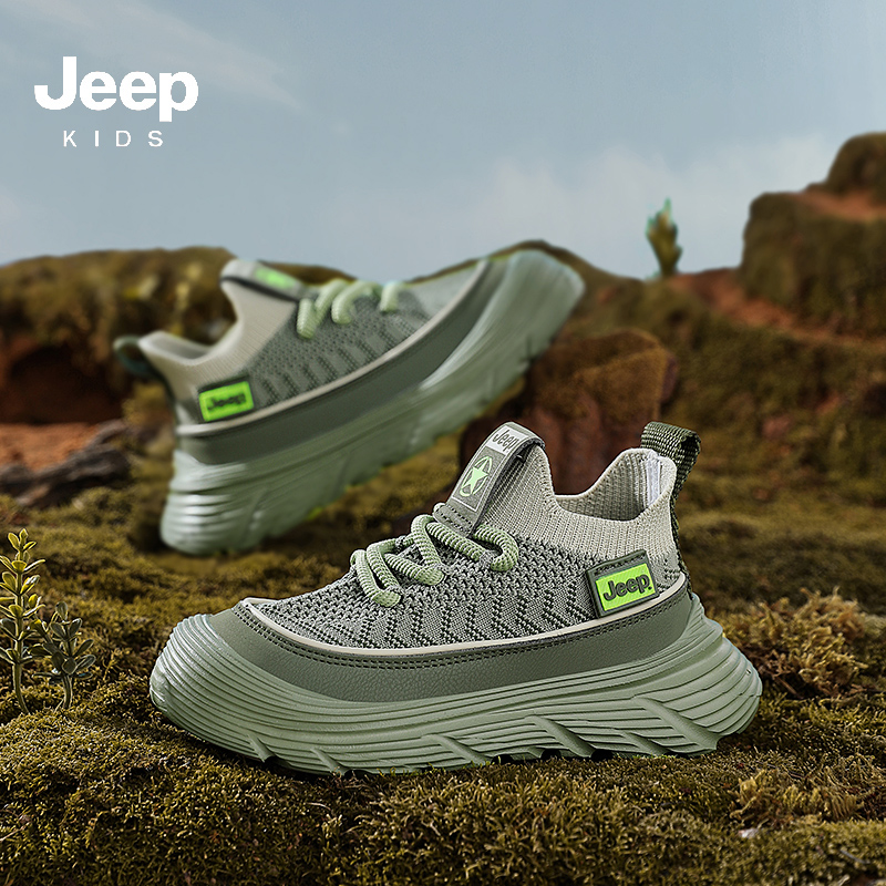 JEEP秋季新款厚底飞织儿童运动鞋28-38控价159.9
