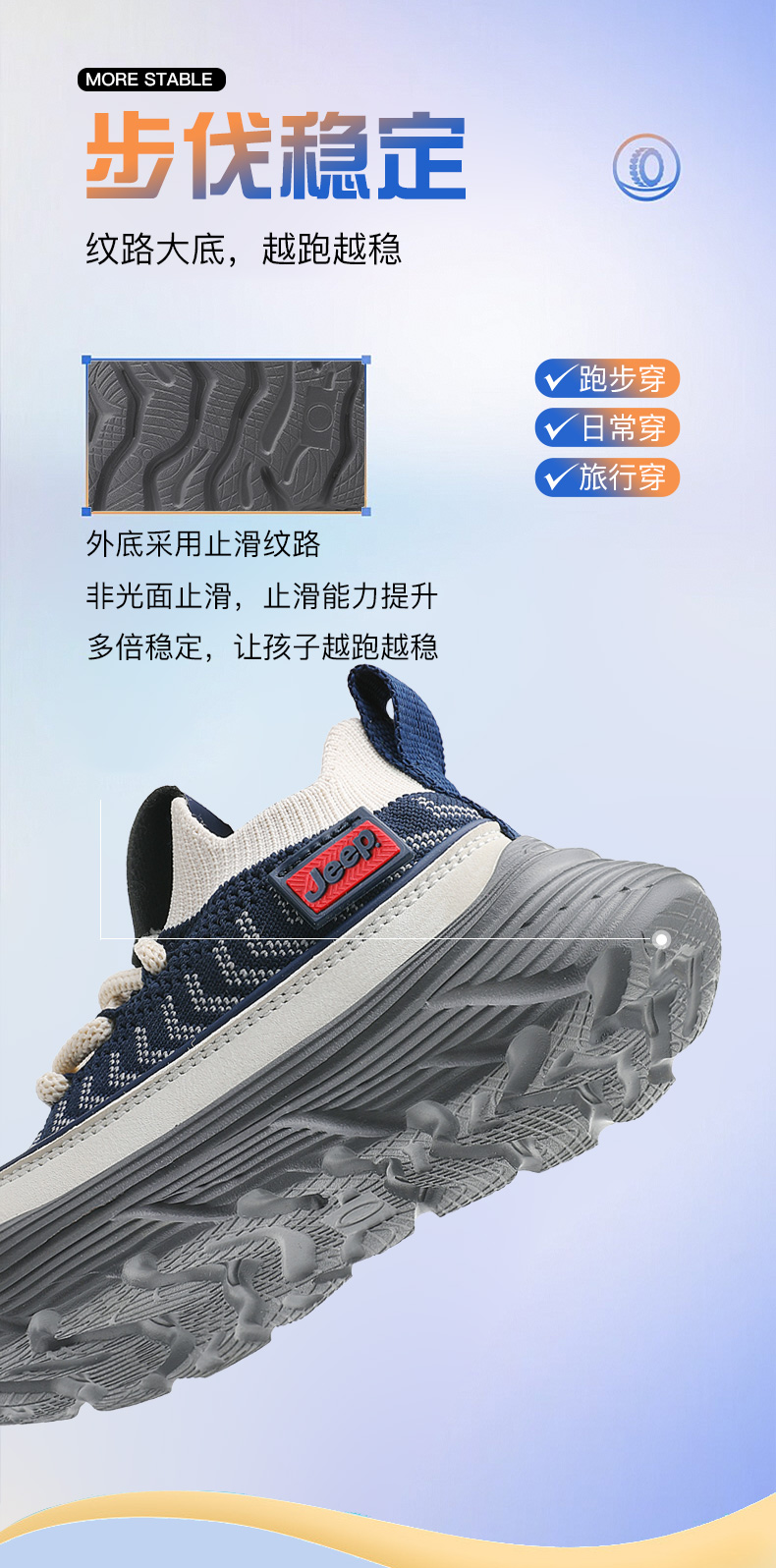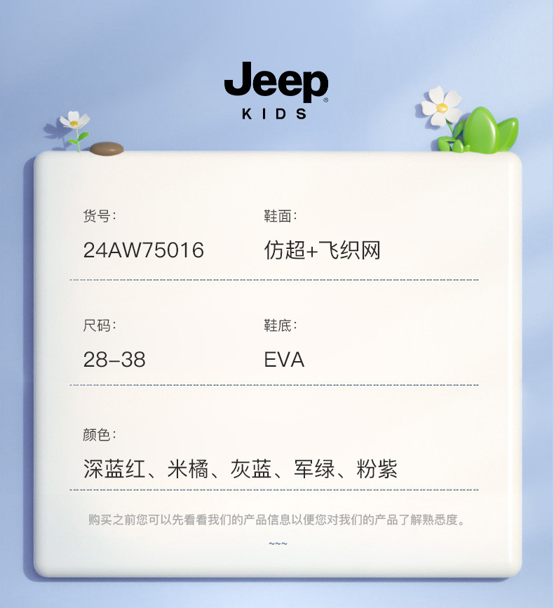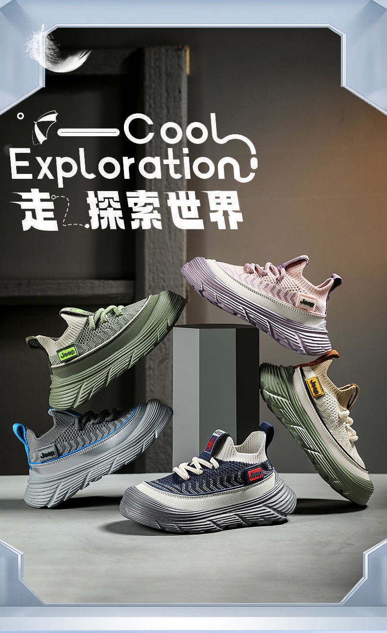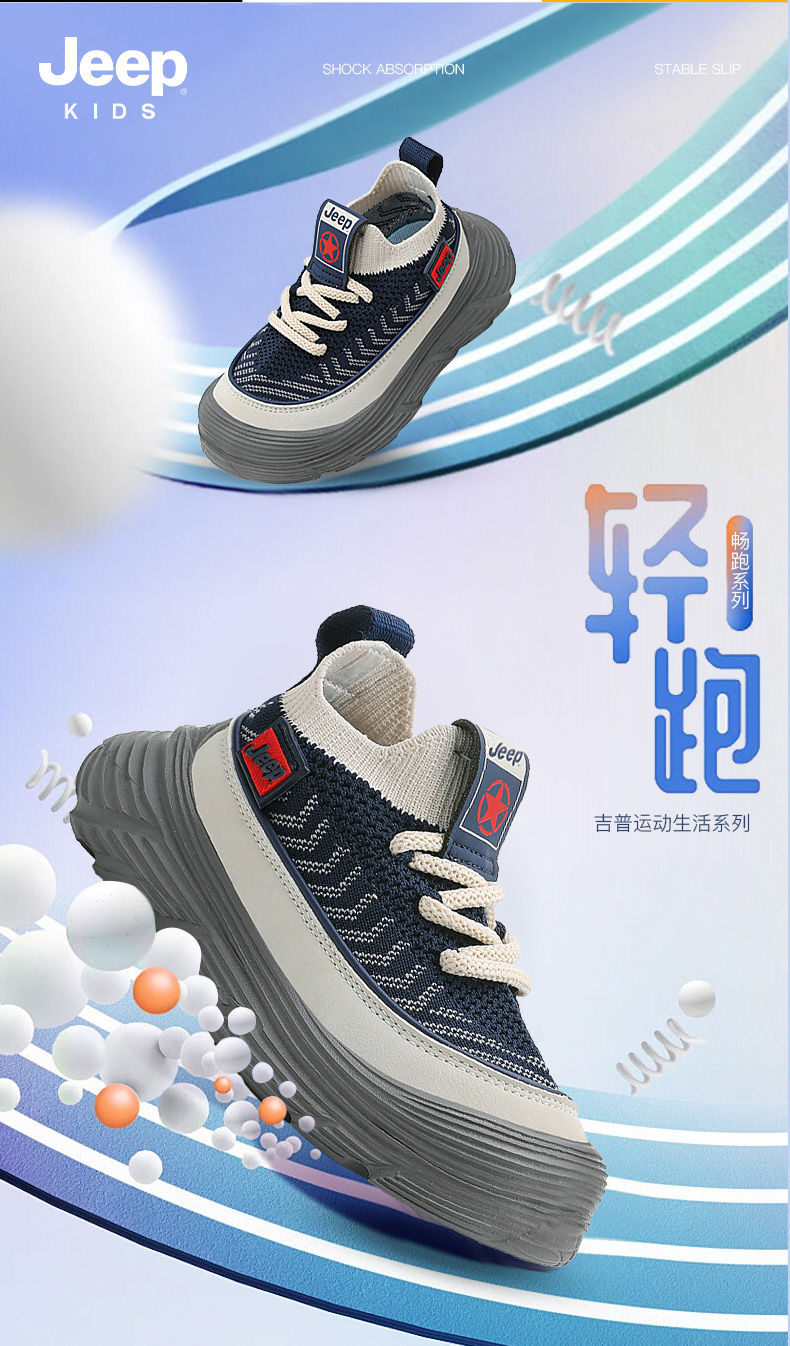 JEEP秋季新款厚底飞织儿童运动鞋28-38控价159.9