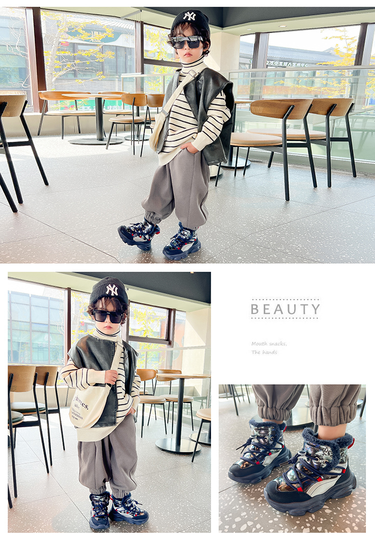 | 商品名称:浩利隆5977冬季男童男孩加绒大棉保暖棉鞋户外棉靴 |