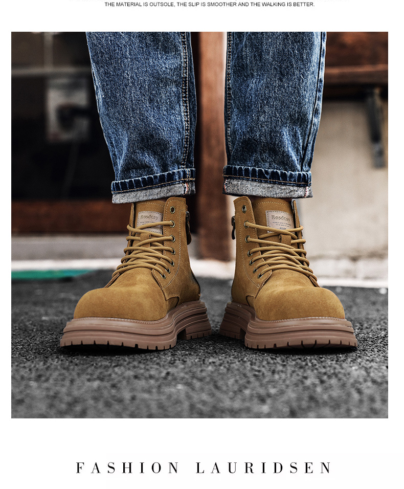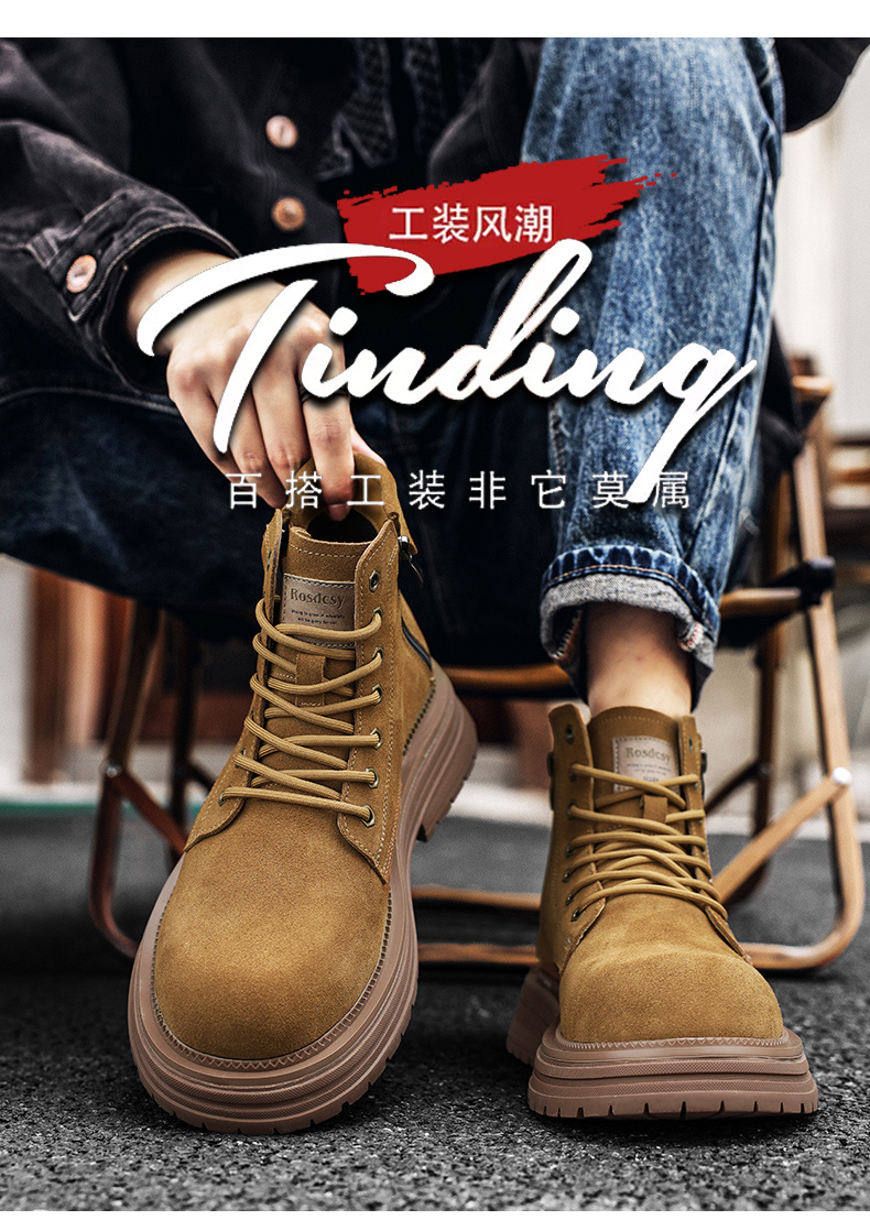 | 商品名称:马丁靴男款2024新款真皮大黄靴复古厚底增高工装靴大头百搭高 |