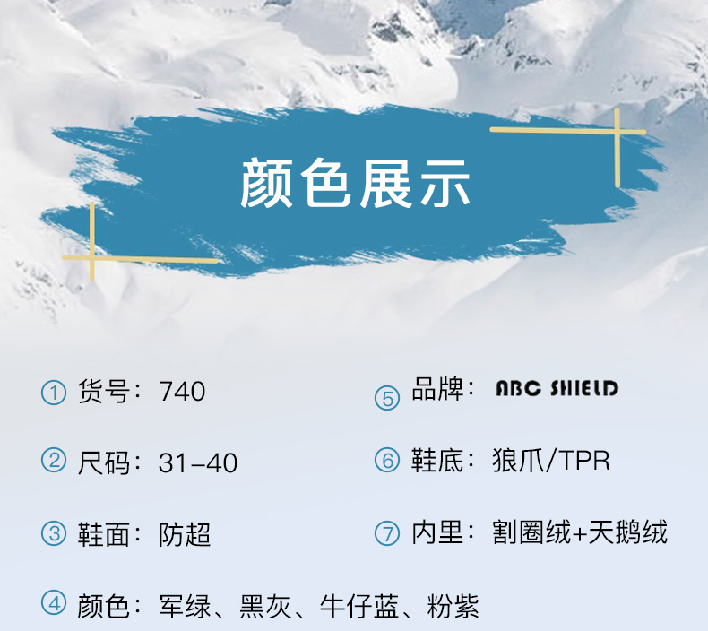 | 商品名称:浩利隆740新款冬季大棉带狼爪雪地靴 31-40 |