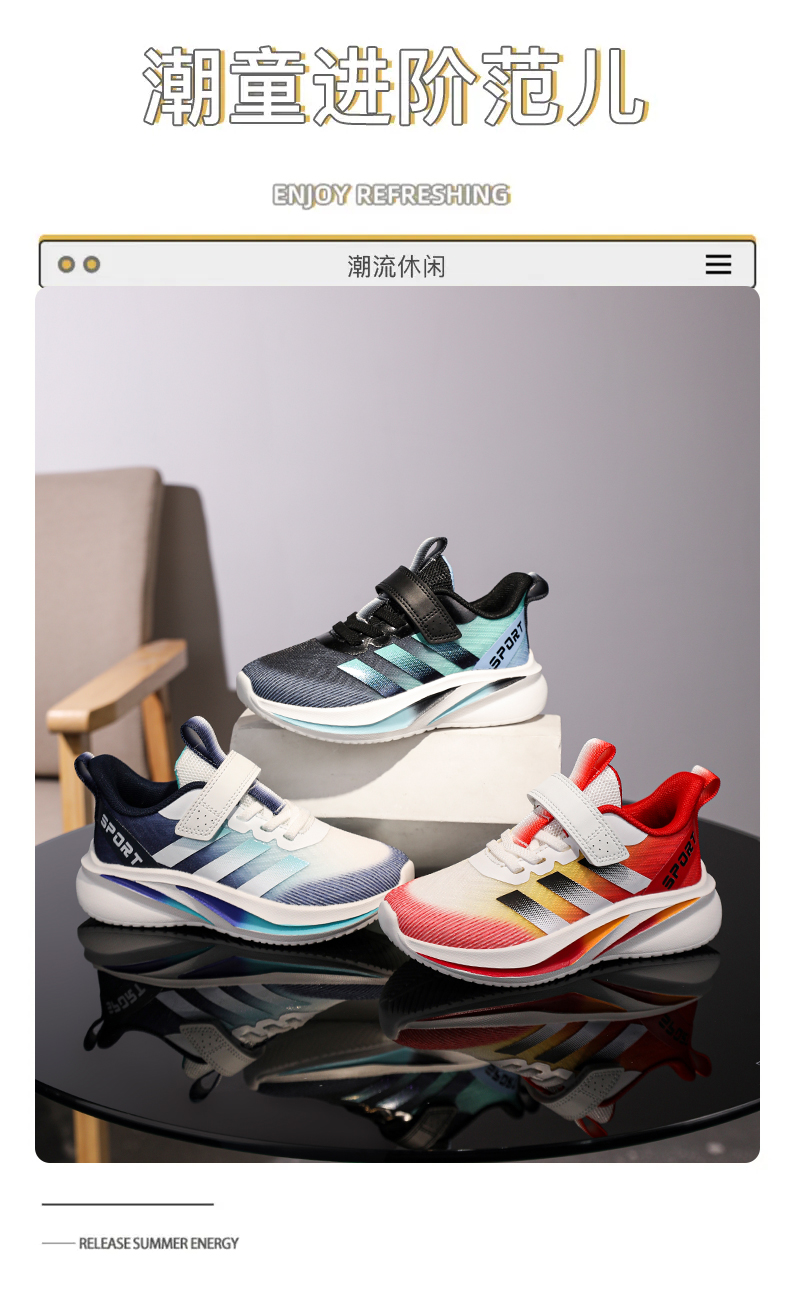 | 商品名称:浩利隆2508四季网面透气魔术贴儿童运动鞋青少年跑步鞋 |