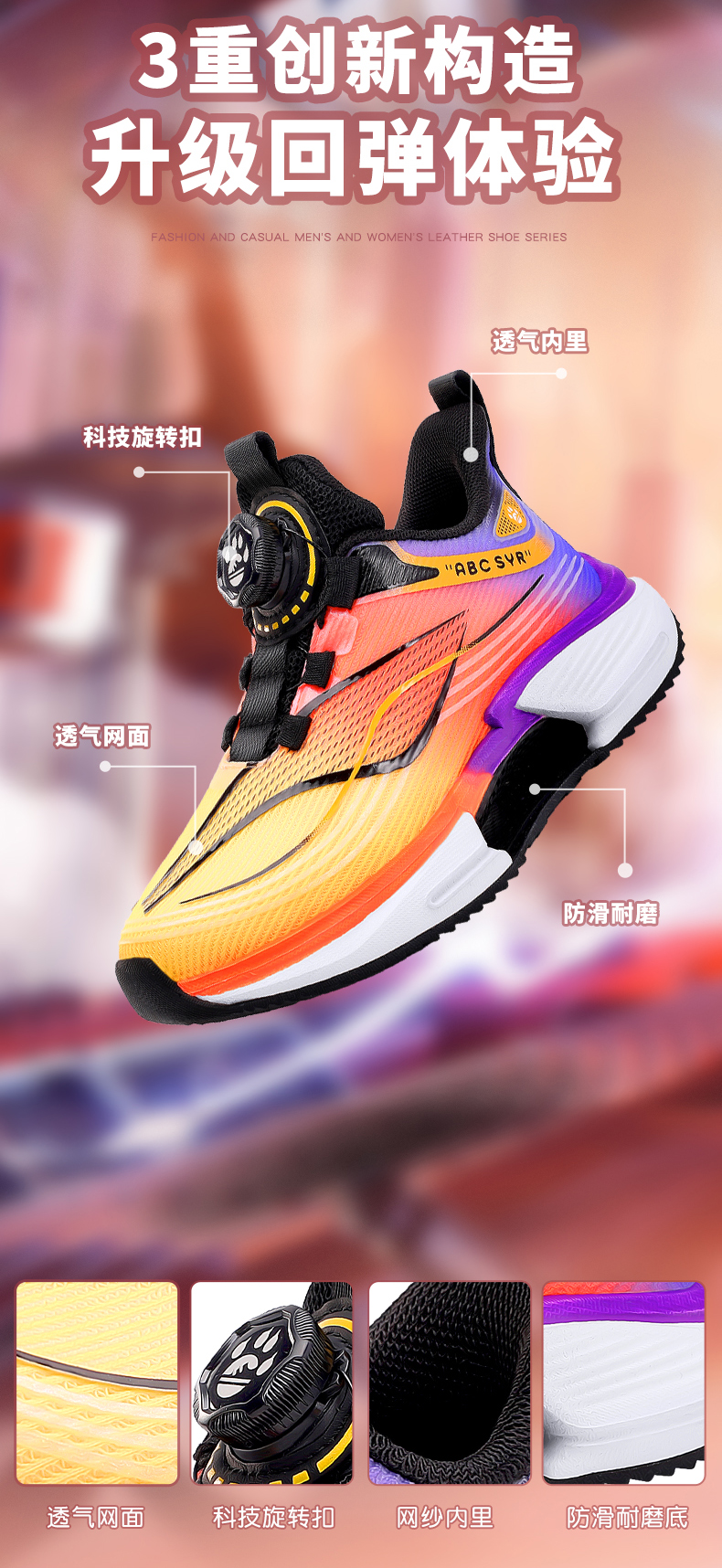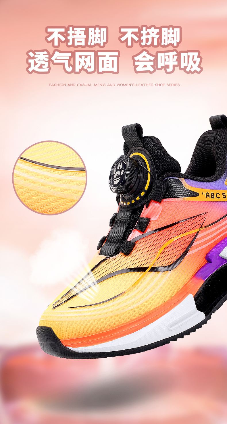 【了然鞋业】新款舒适透气双网儿童时尚休闲运动鞋29-39