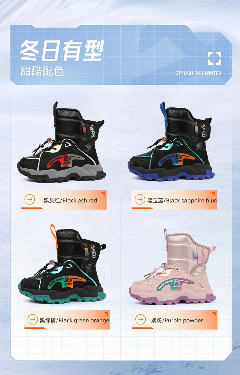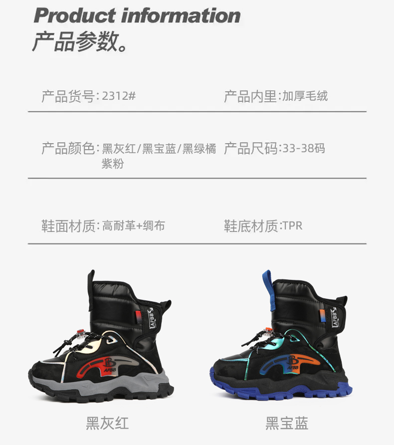商品名称:悦足2312 秋季新款高品质儿童雪地靴33-38 |