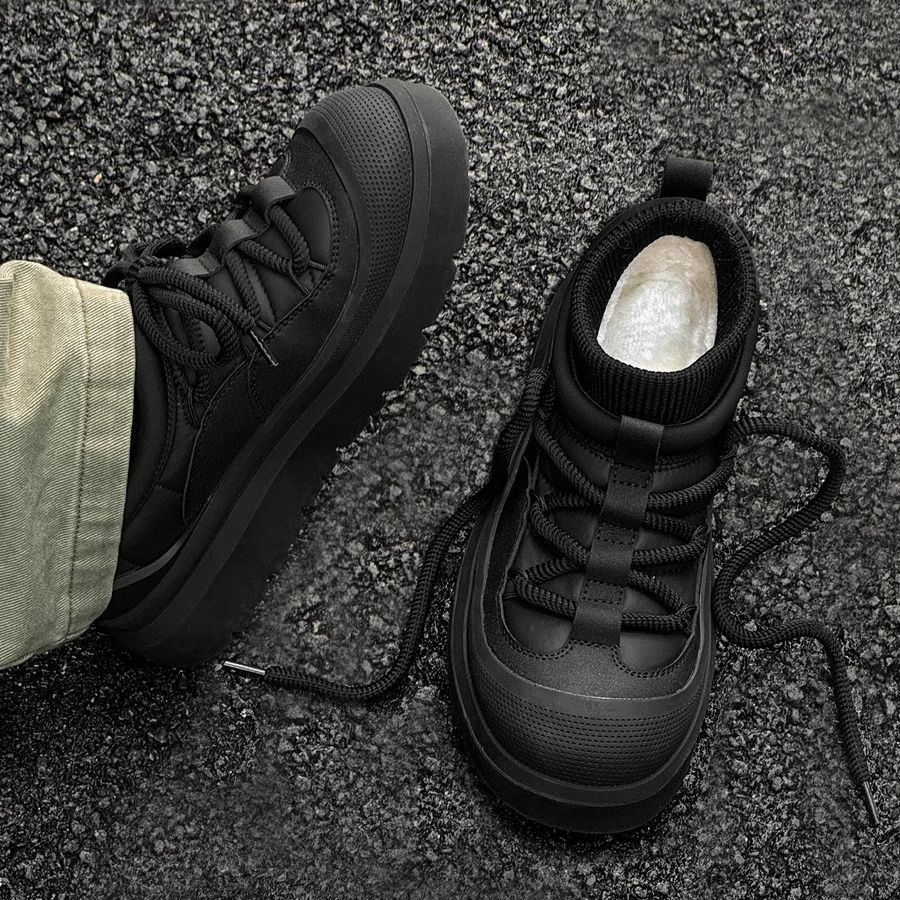 易成鞋业冬季加绒加厚雪地靴百搭保暖棉鞋厚底黑色防水马丁男靴