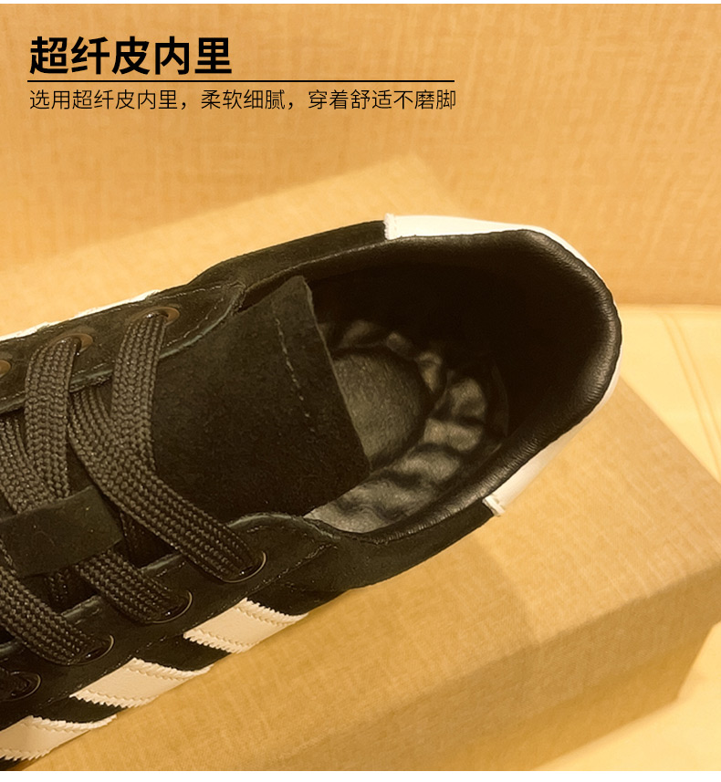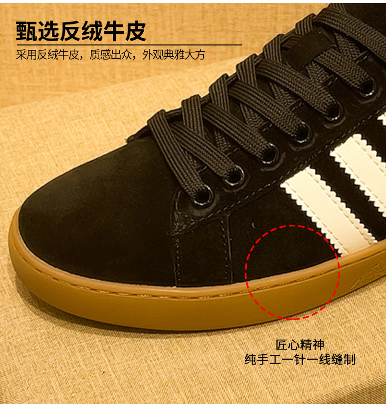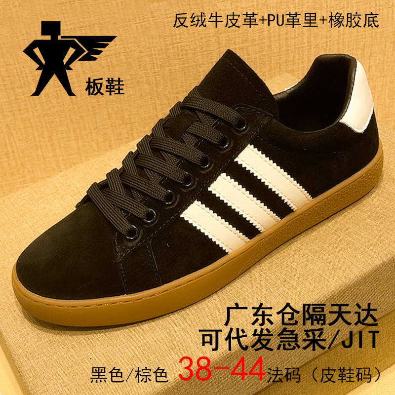 商品名称:三条杠真皮黑色板鞋莆田鞋男新款百搭休闲板鞋学生低帮运动潮鞋 |