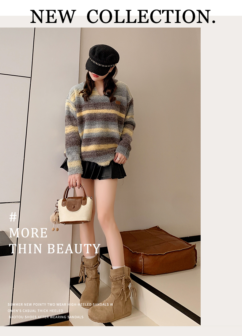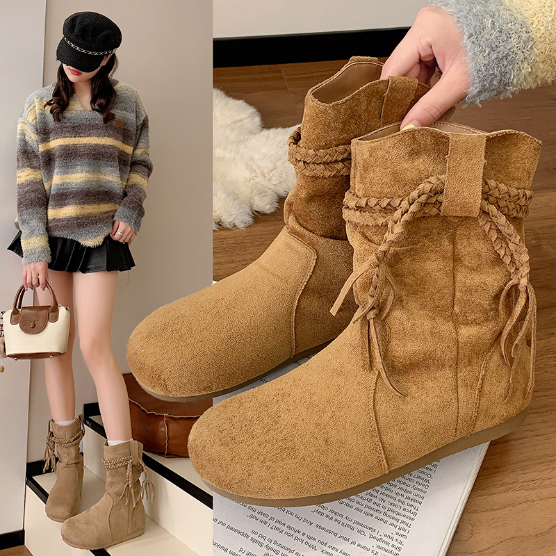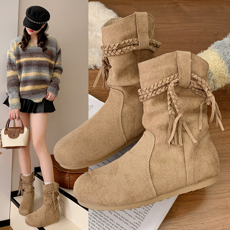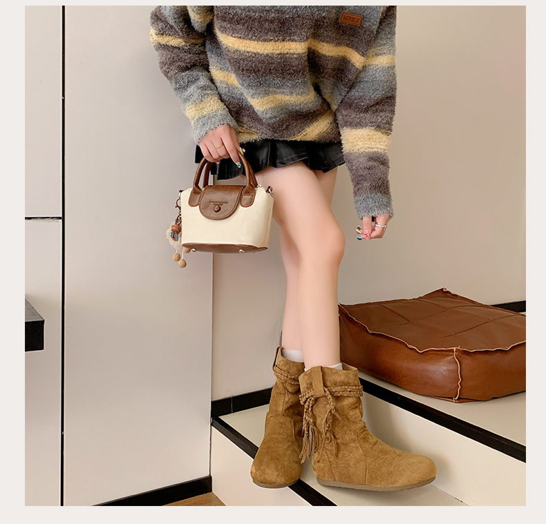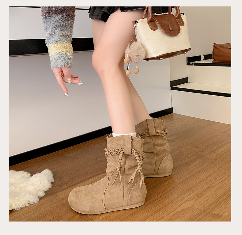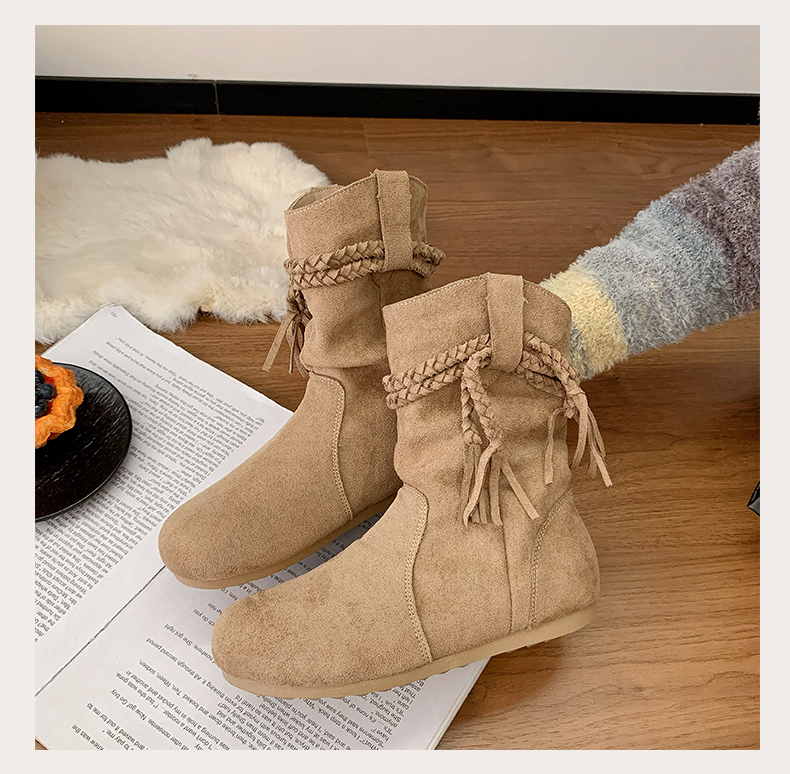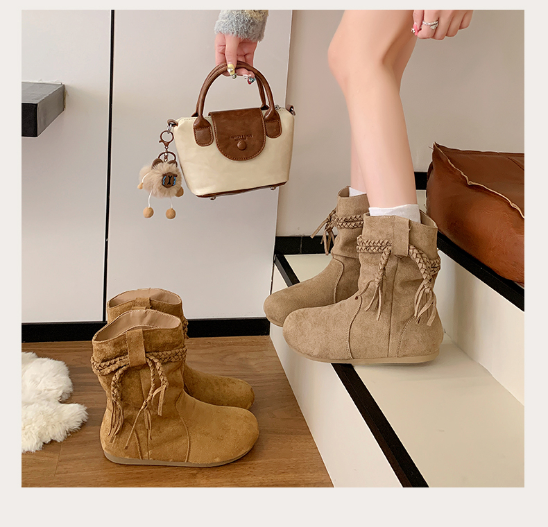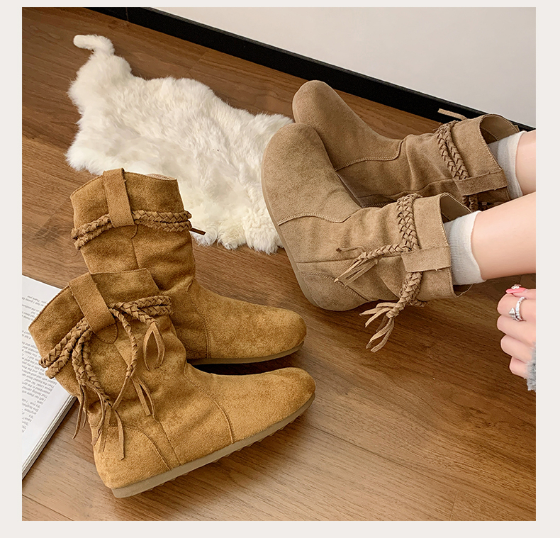 商品名称:中帮内增高堆堆靴流苏波西米亚风 |