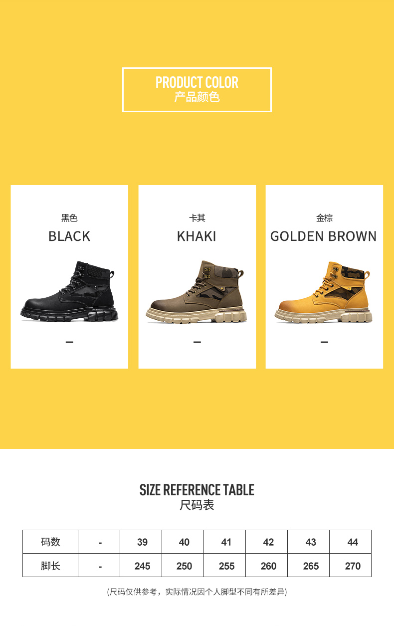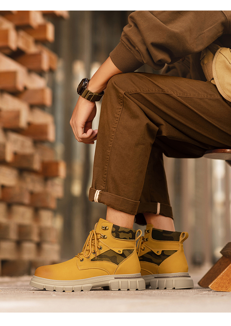 商品名称:新款男皮靴子马丁靴大黄靴户外机车保暖靴子高帮时装靴莆田鞋 |