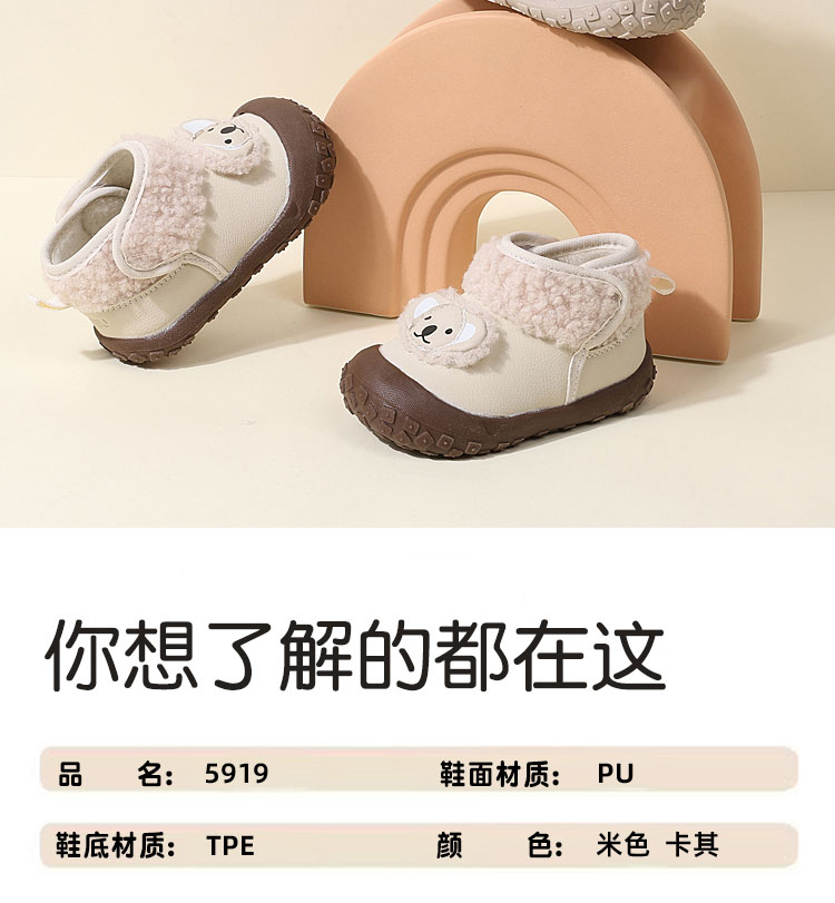 商品名称:一岁宝宝雪地靴冬季婴儿棉鞋软底学步鞋3-6-12月婴幼儿加绒 | 商品货号:X-5919 | 商品计量:双 |