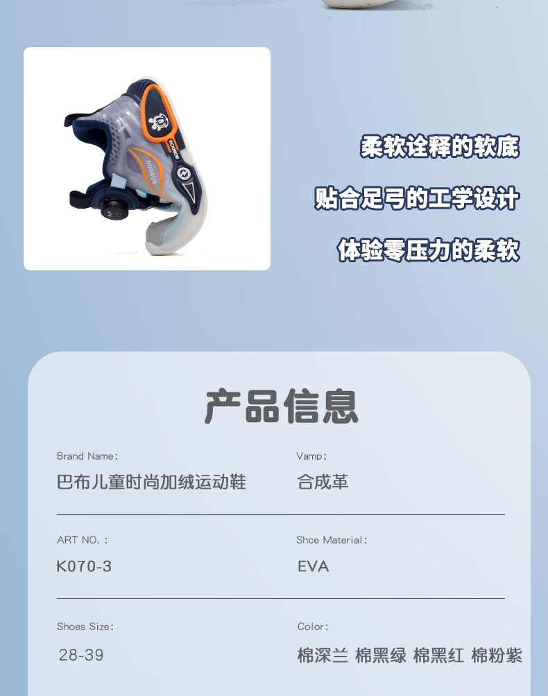 商品名称:【了然鞋业】冬季新款加绒保暖二棉儿童运动鞋棉鞋28-39 |
