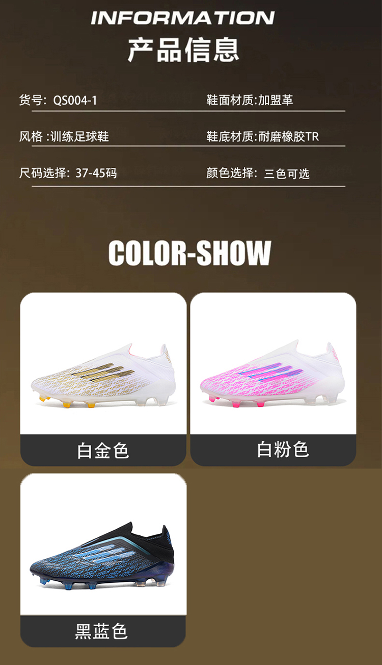 商品名称:厂销最新款无缝F50爆款高端长钉足球鞋 37-45码 |
