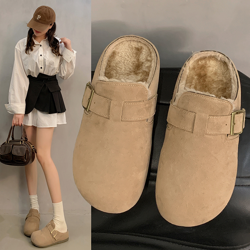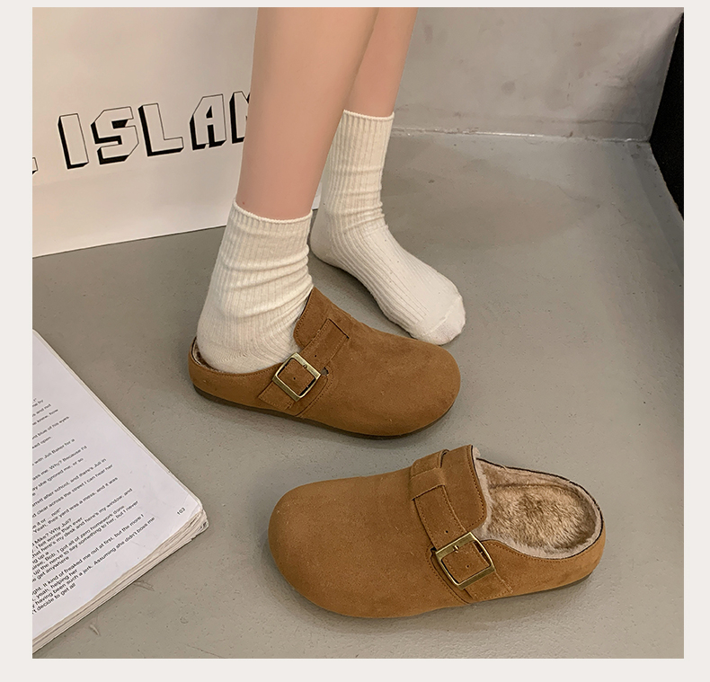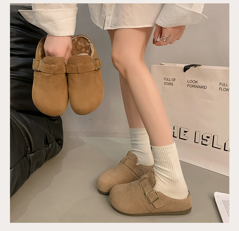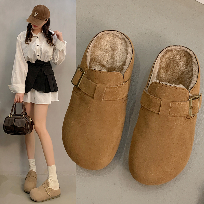 情侣拖35-42码加棉加绒勃肯半拖保暖雪地半拖