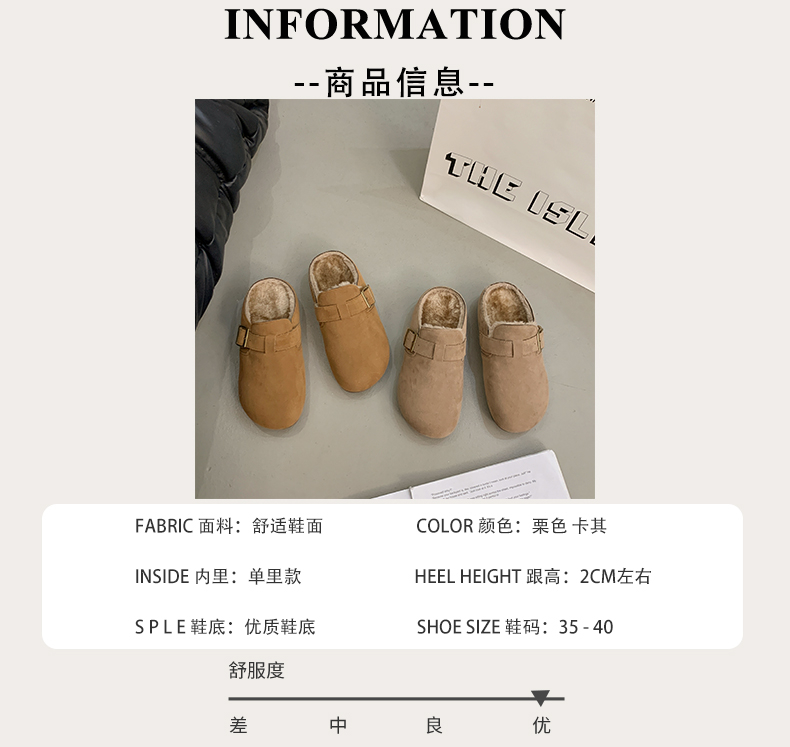 商品名称:情侣拖35-42码加棉加绒勃肯半拖保暖雪地半拖 |