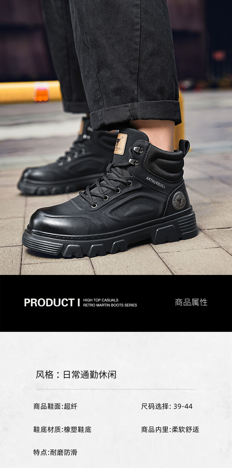 悦足3089 秋冬皮靴工装靴马丁靴39-44 控价178