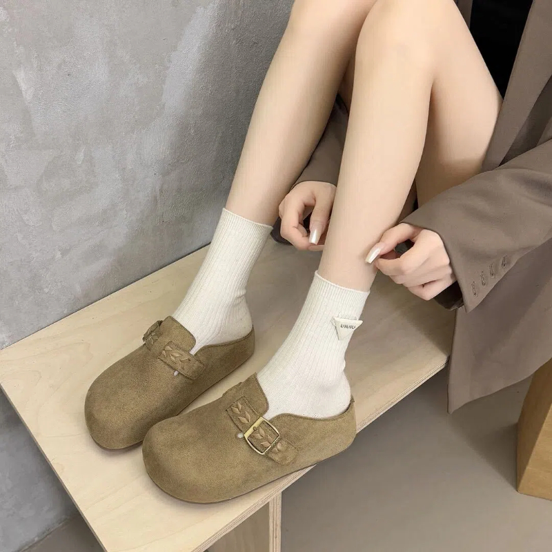 厚底增高绣花包头半拖鞋女外穿