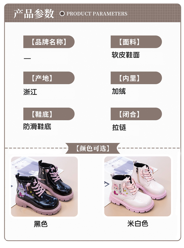 | 商品名称:女童马丁靴2025秋冬新款库洛米儿童公主短靴美乐蒂加绒保暖棉 |
