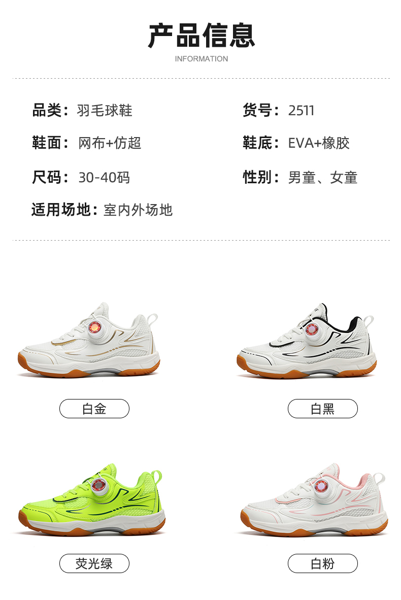 | 商品名称:儿童羽毛球鞋2025新款网面透气男童女童 |