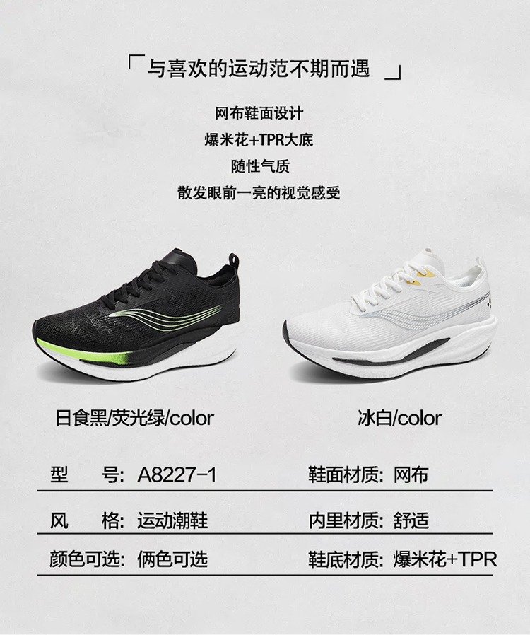 A8227 高品质真爆碳板运动鞋飞织透气休闲男鞋跑步鞋