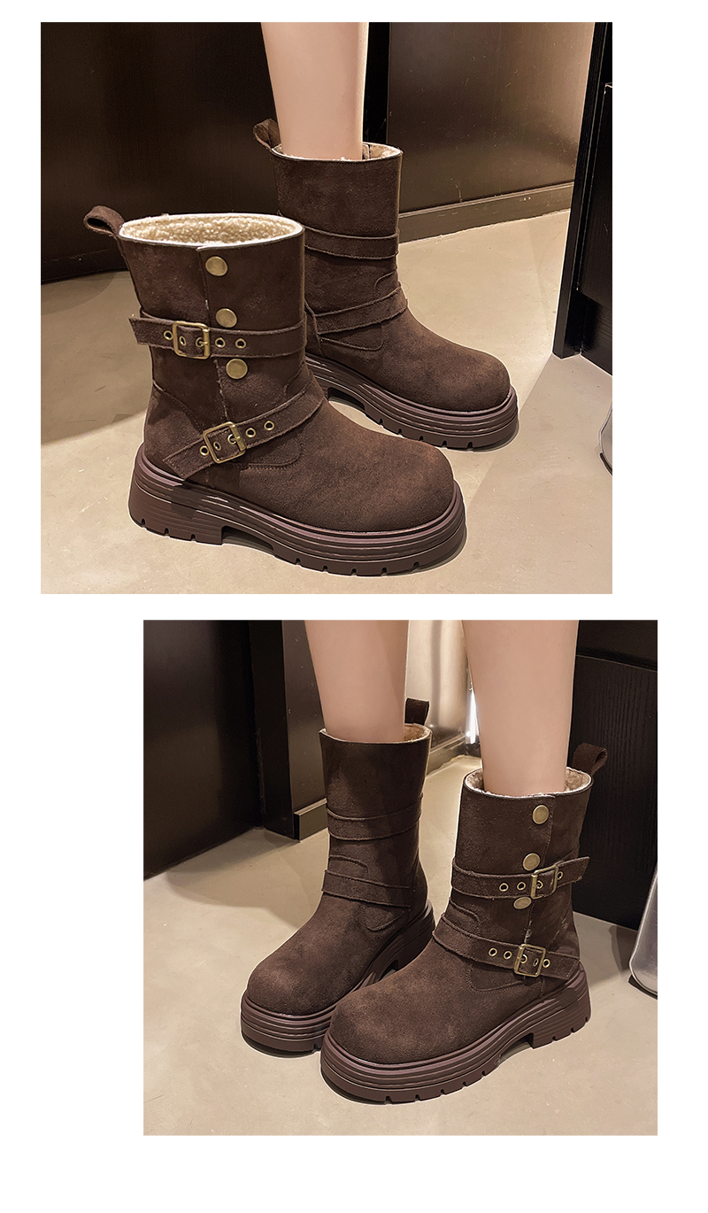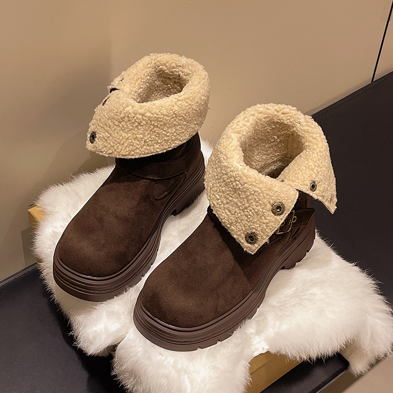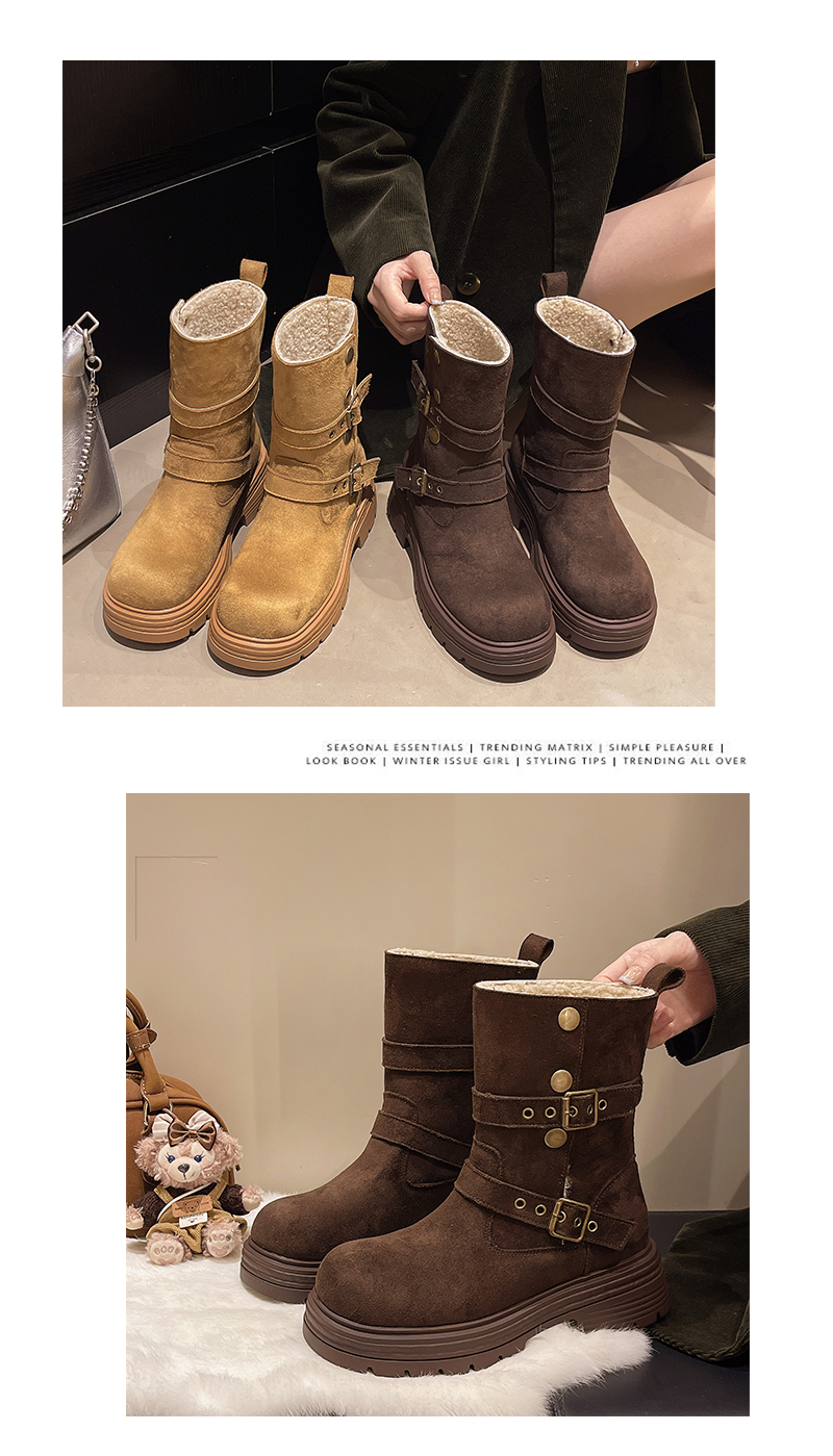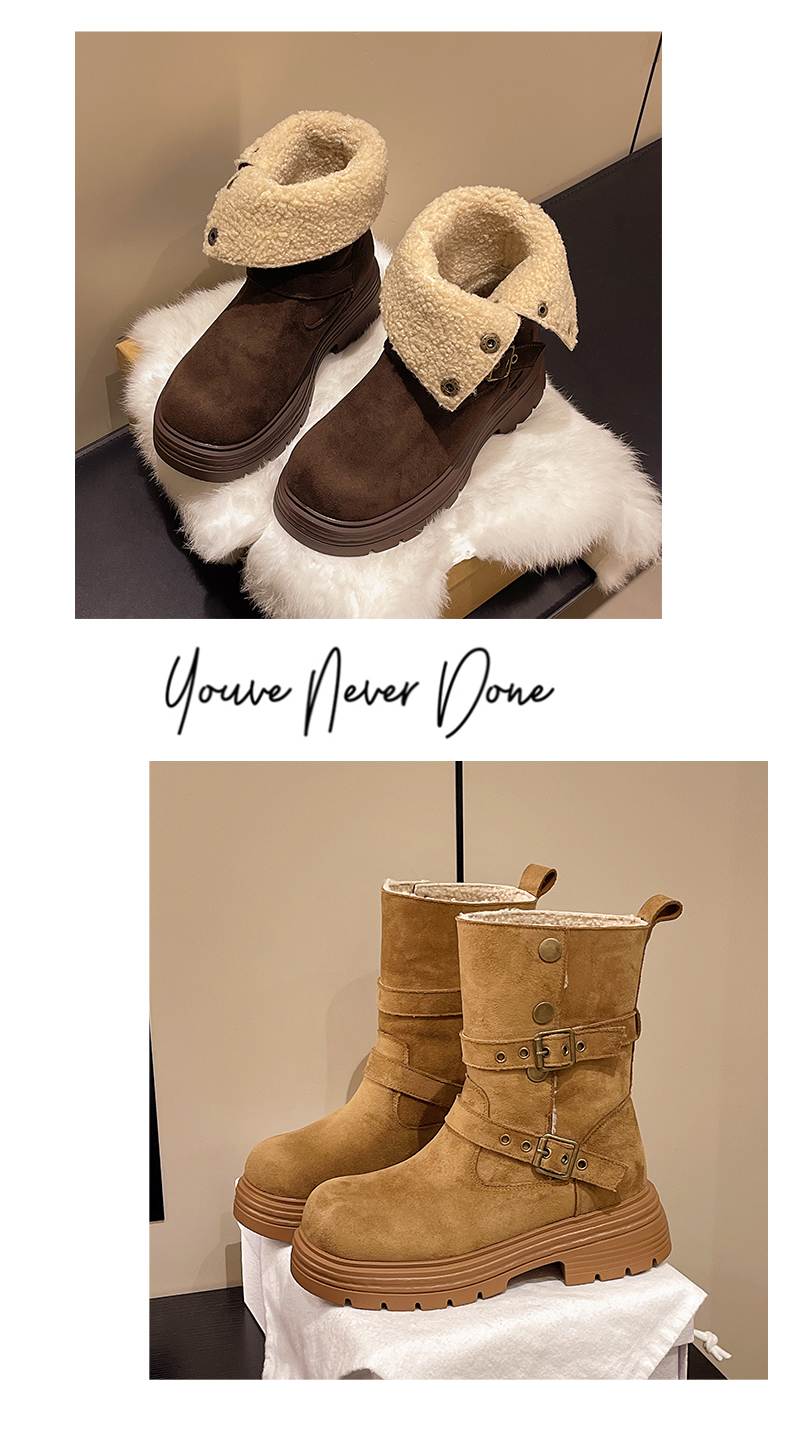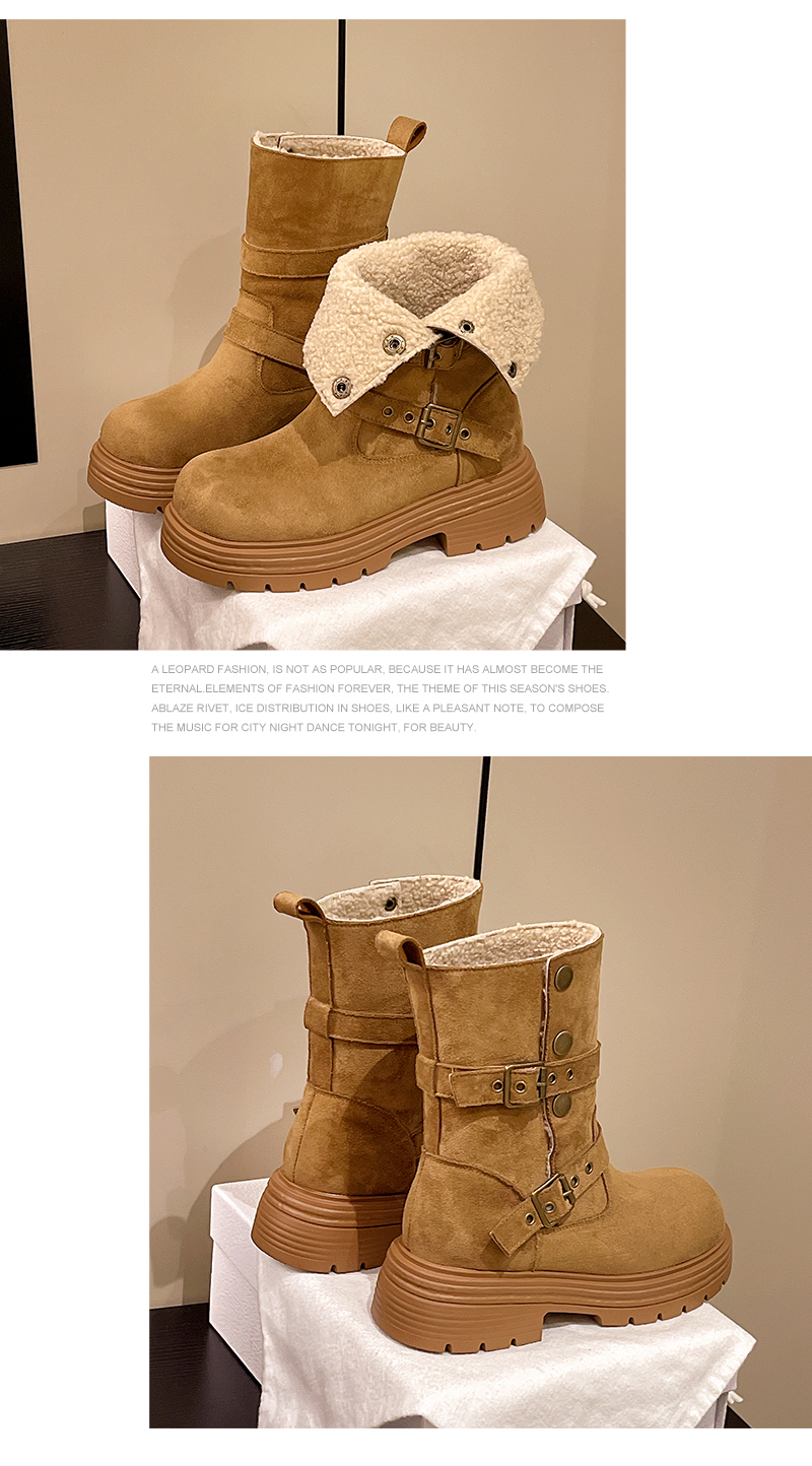 中帮靴可折叠搭扣保暖时尚一脚蹬