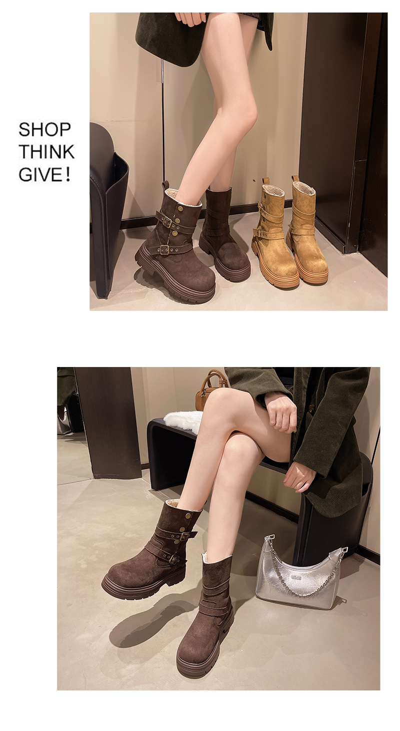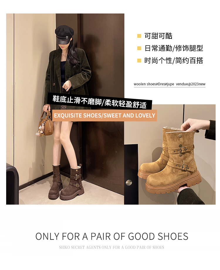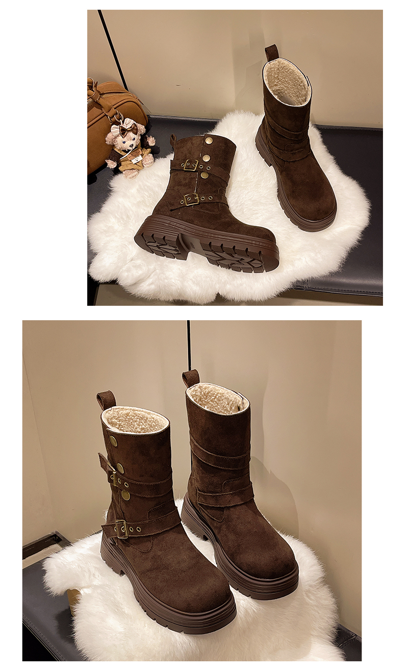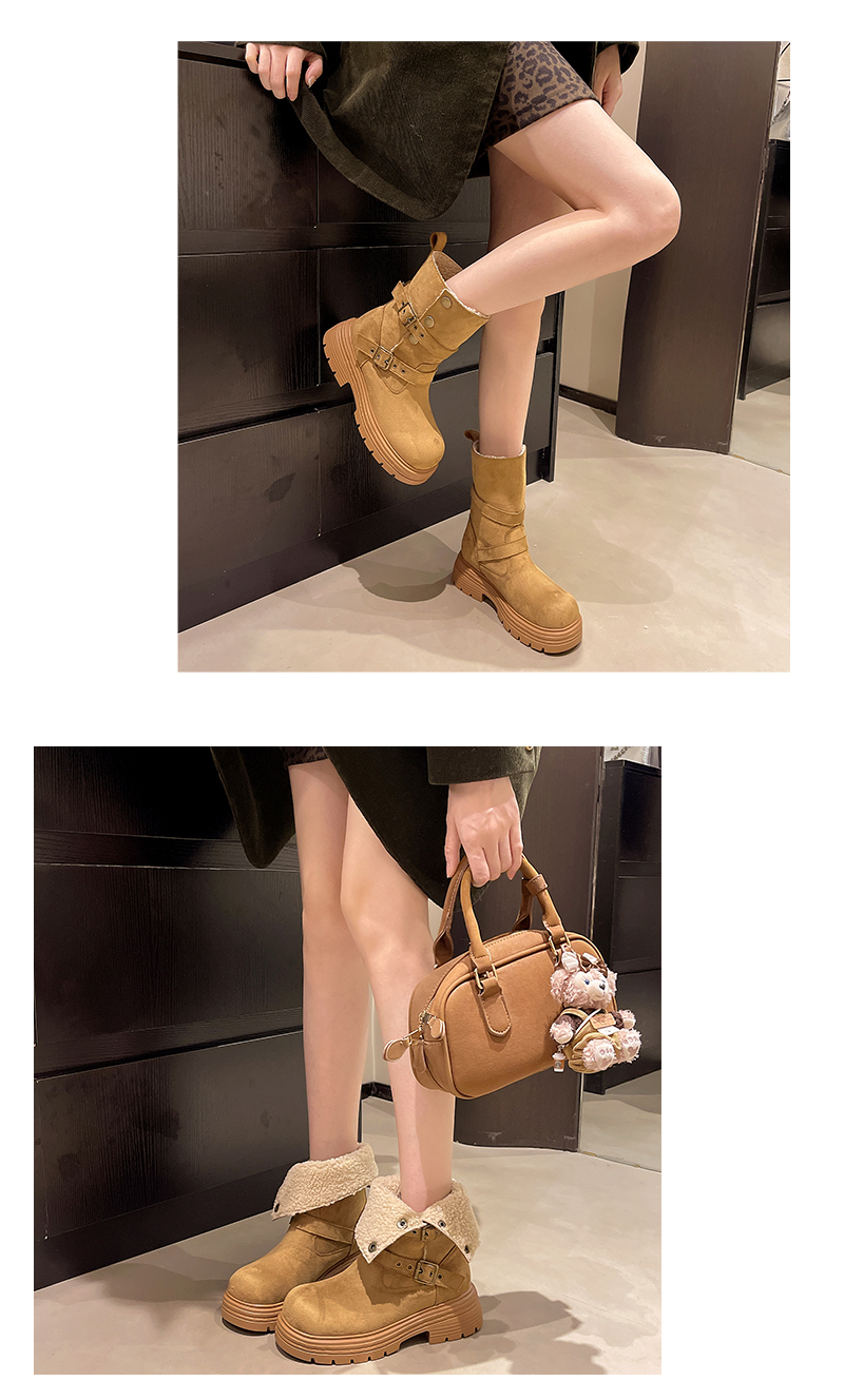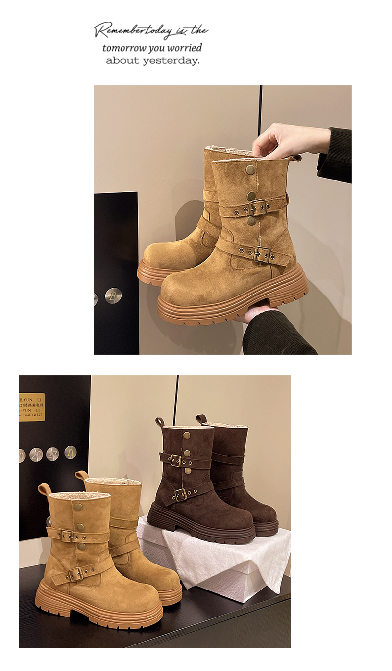 中帮靴可折叠搭扣保暖时尚一脚蹬
