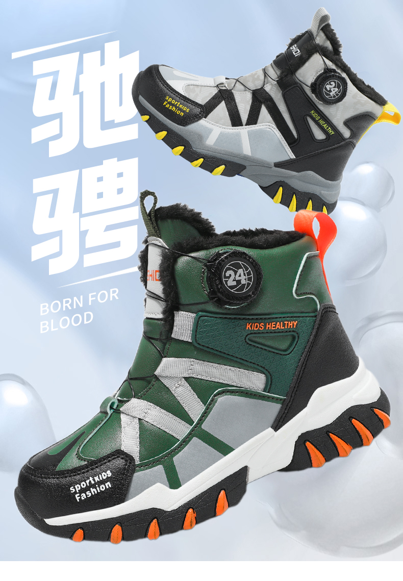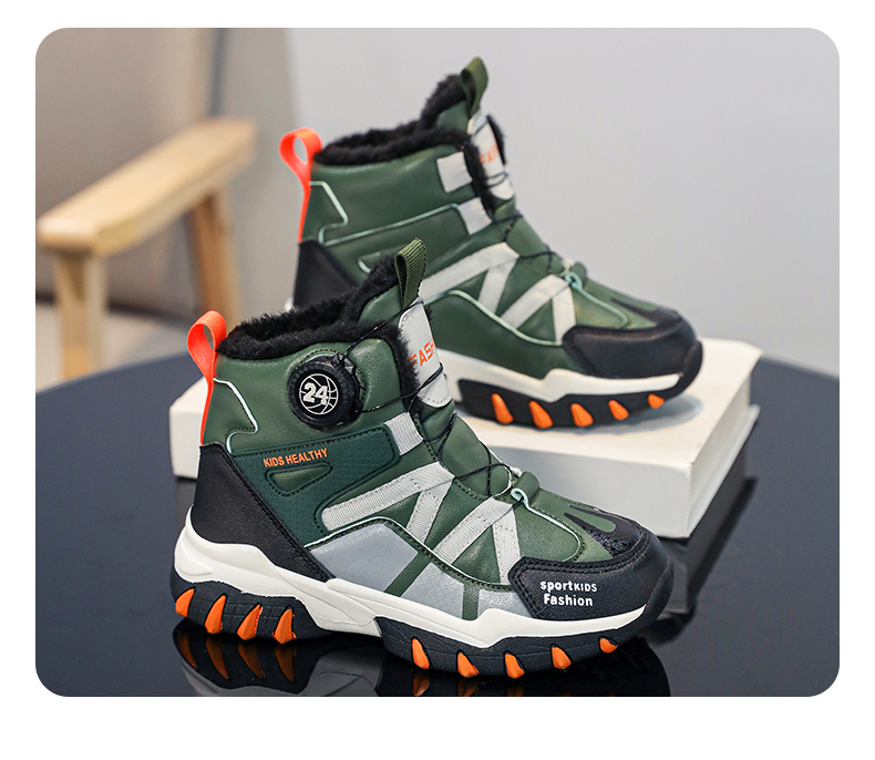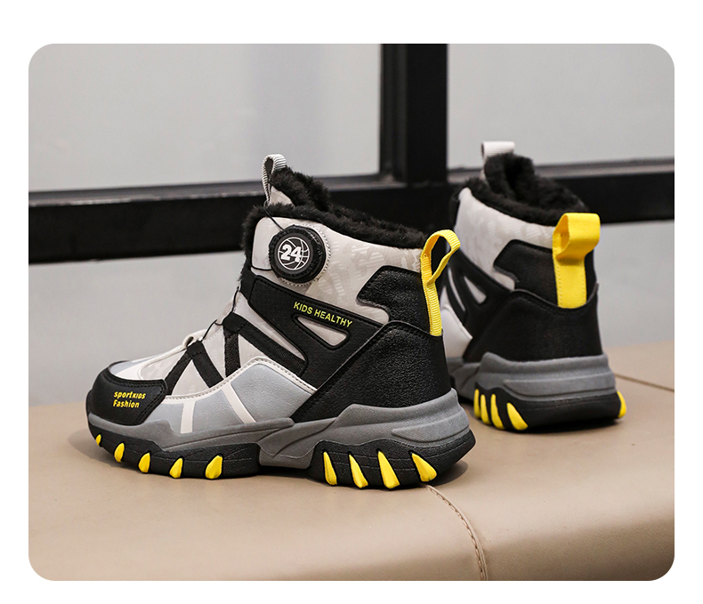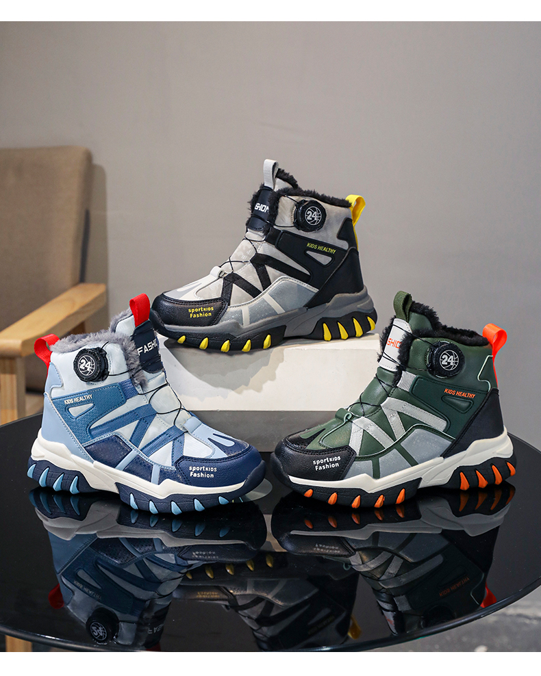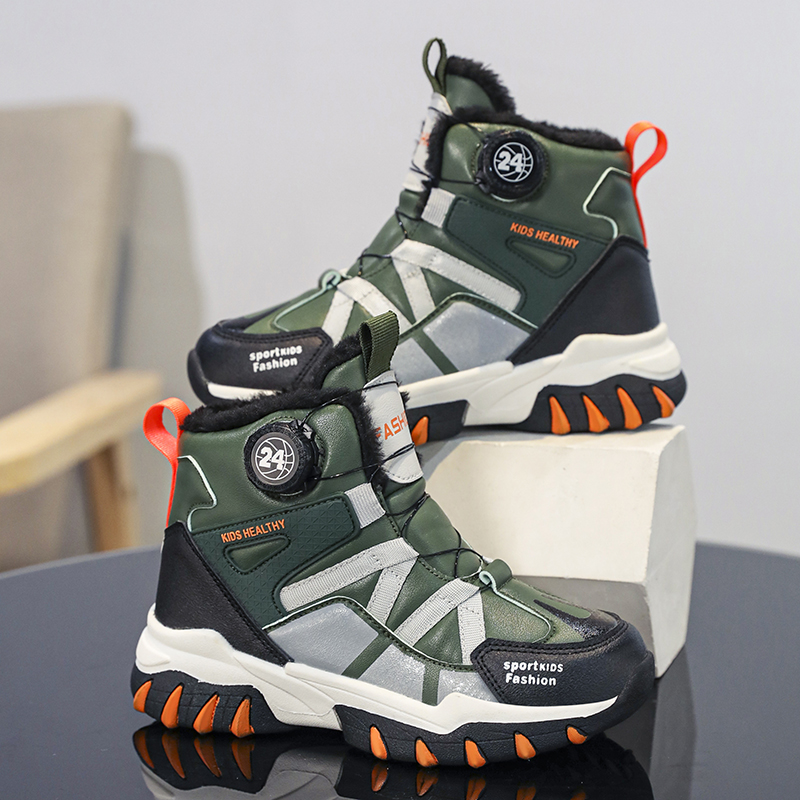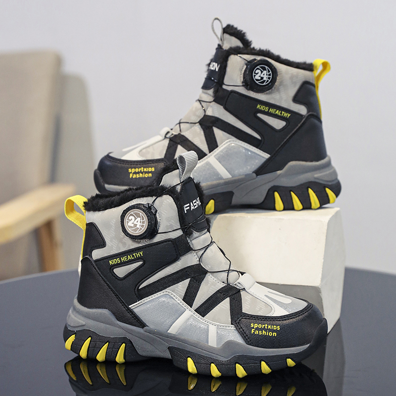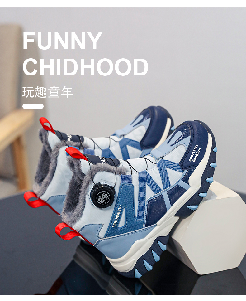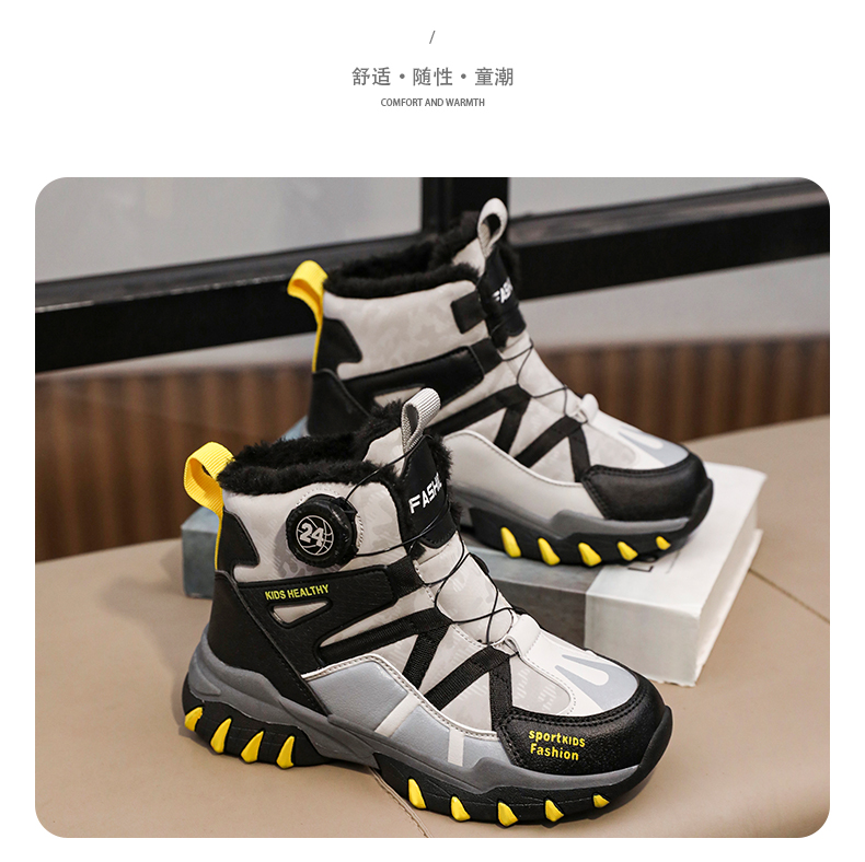 悦足2408儿童加绒保暖旋转纽扣雪地靴31-39