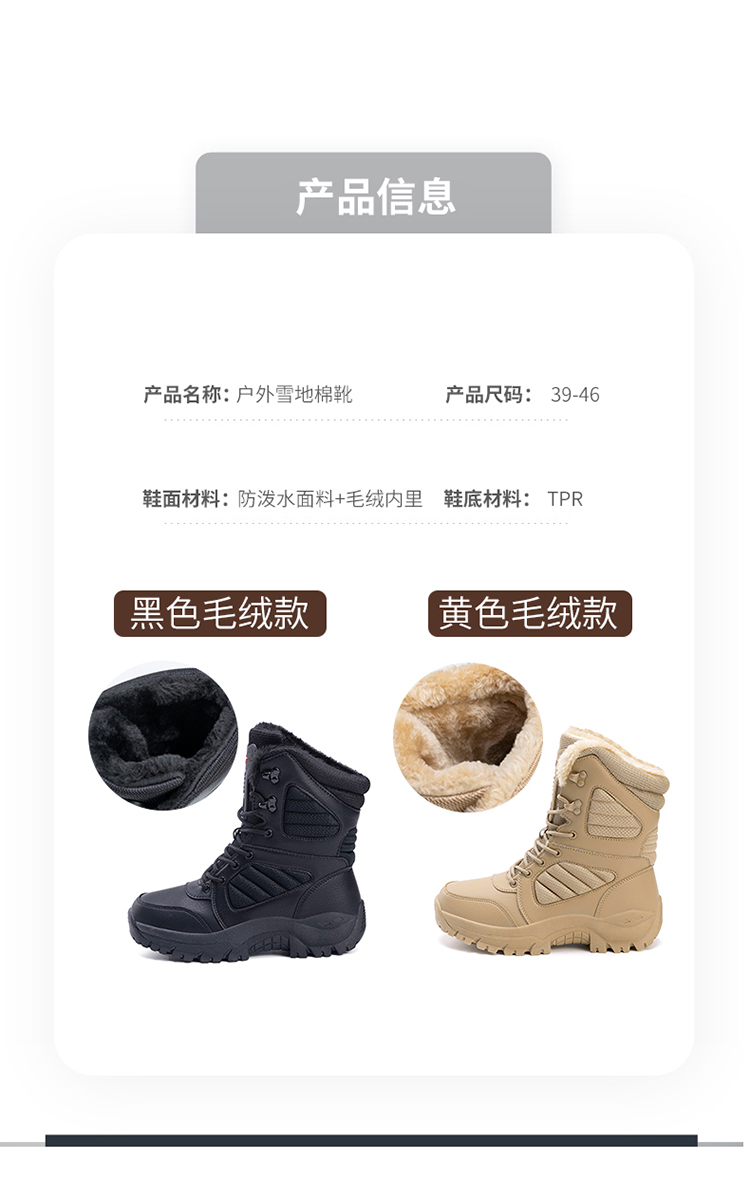 | 商品名称:男士冬季户外雪地棉靴加绒 |