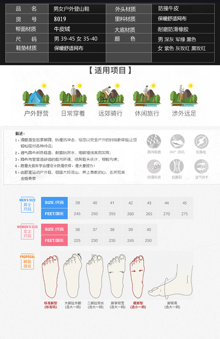 | 商品名称:男女户外登山鞋耐磨防滑 |