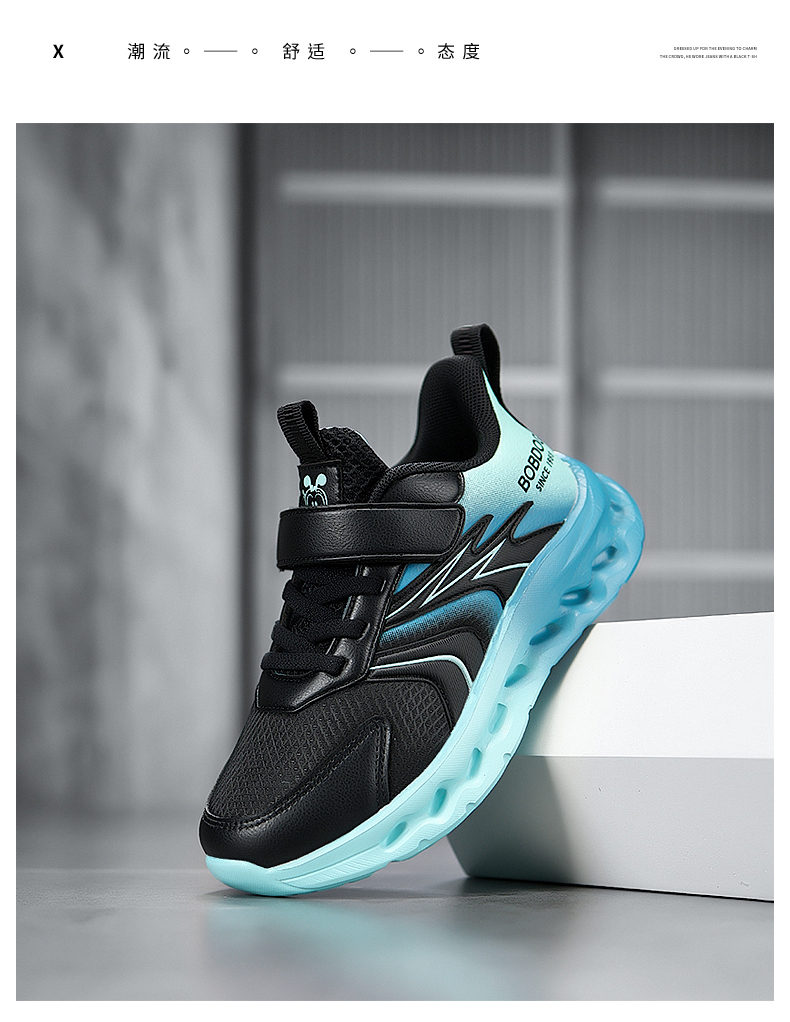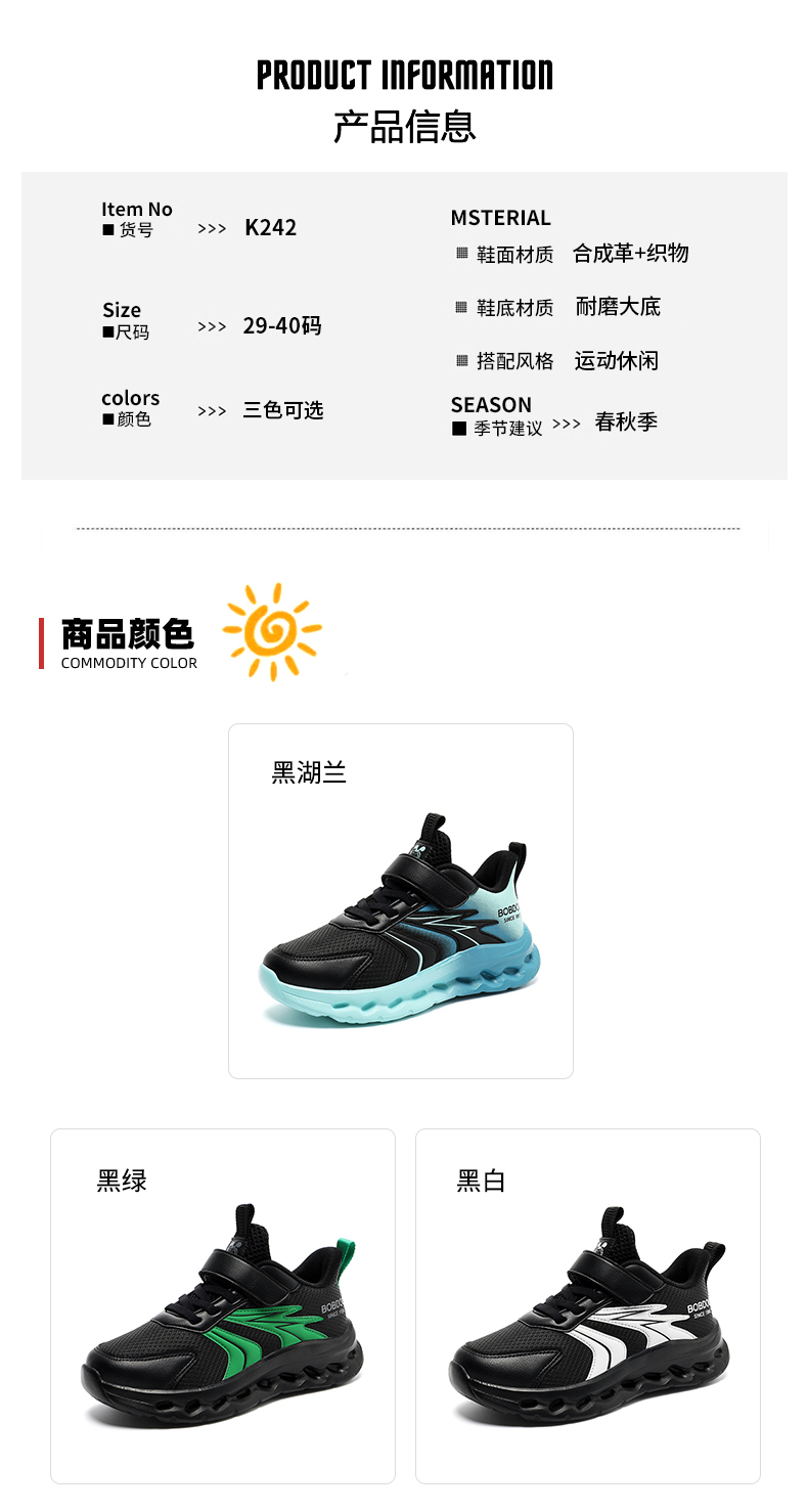 | 商品名称:巴布豆 K242 秋季新款皮面,双网儿童时尚运动鞋29-40 |