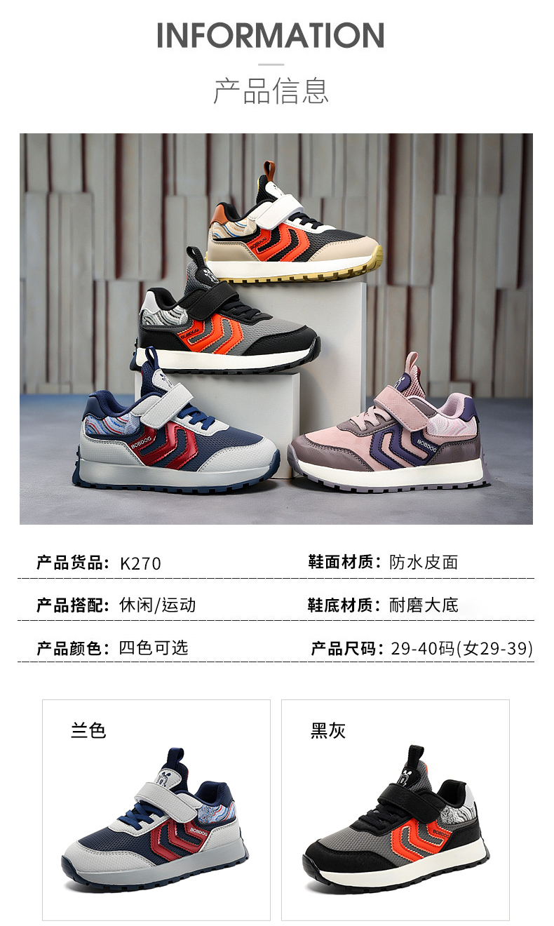 | 商品名称:巴布豆 K270 秋冬新款儿童皮面休闲运动鞋 29-40 |