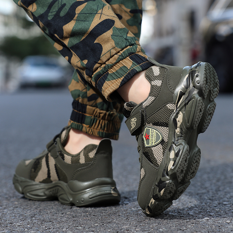 | 商品名称:新款飞织儿童休闲鞋男童军训迷彩鞋子学生运动鞋中大童跑步鞋 |