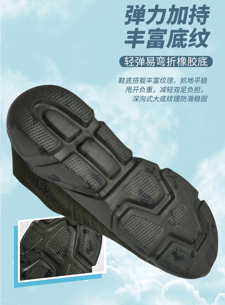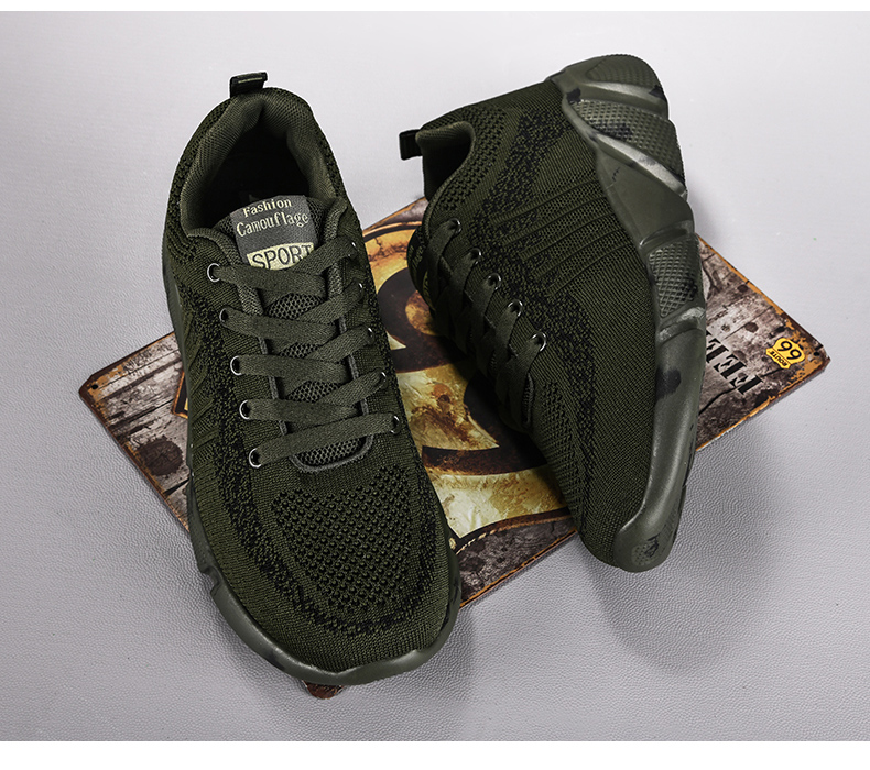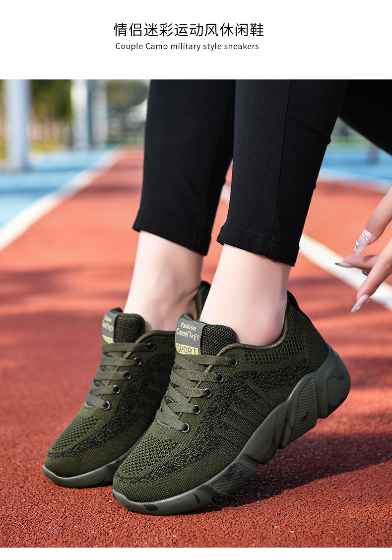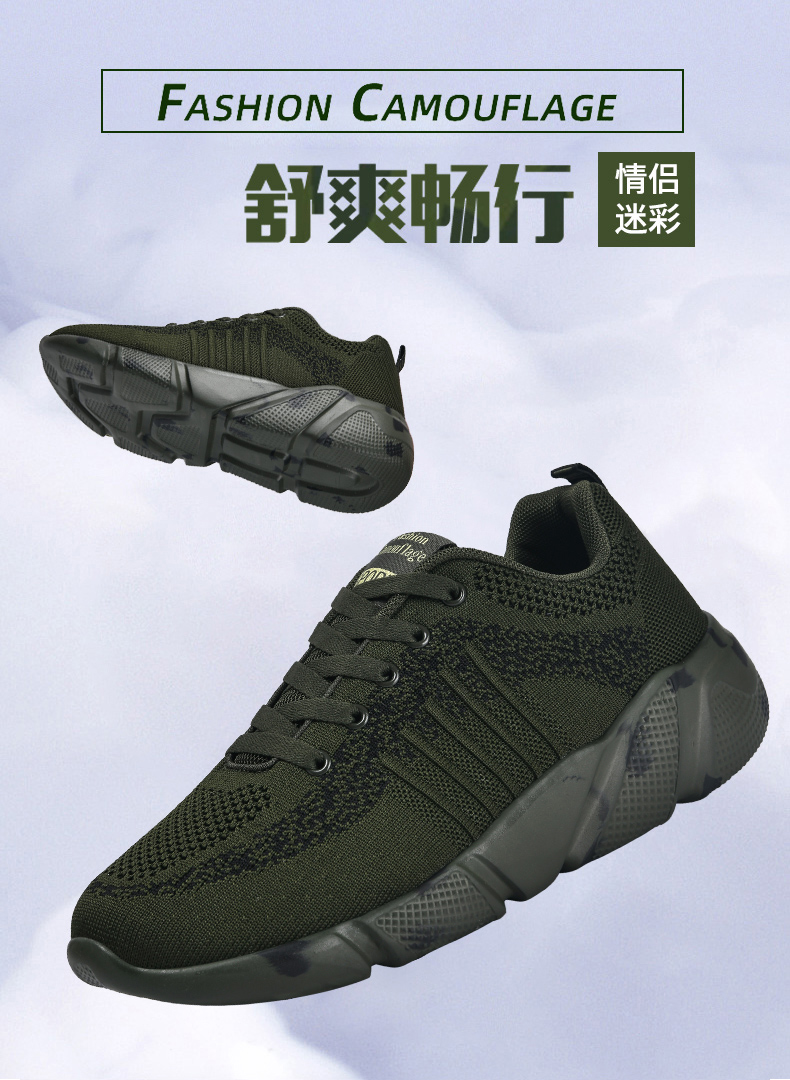 | 商品名称:军绿色飞织休闲鞋高弹厚底舒适软底运动鞋户外迷彩鞋子揽奇军迷鞋 |