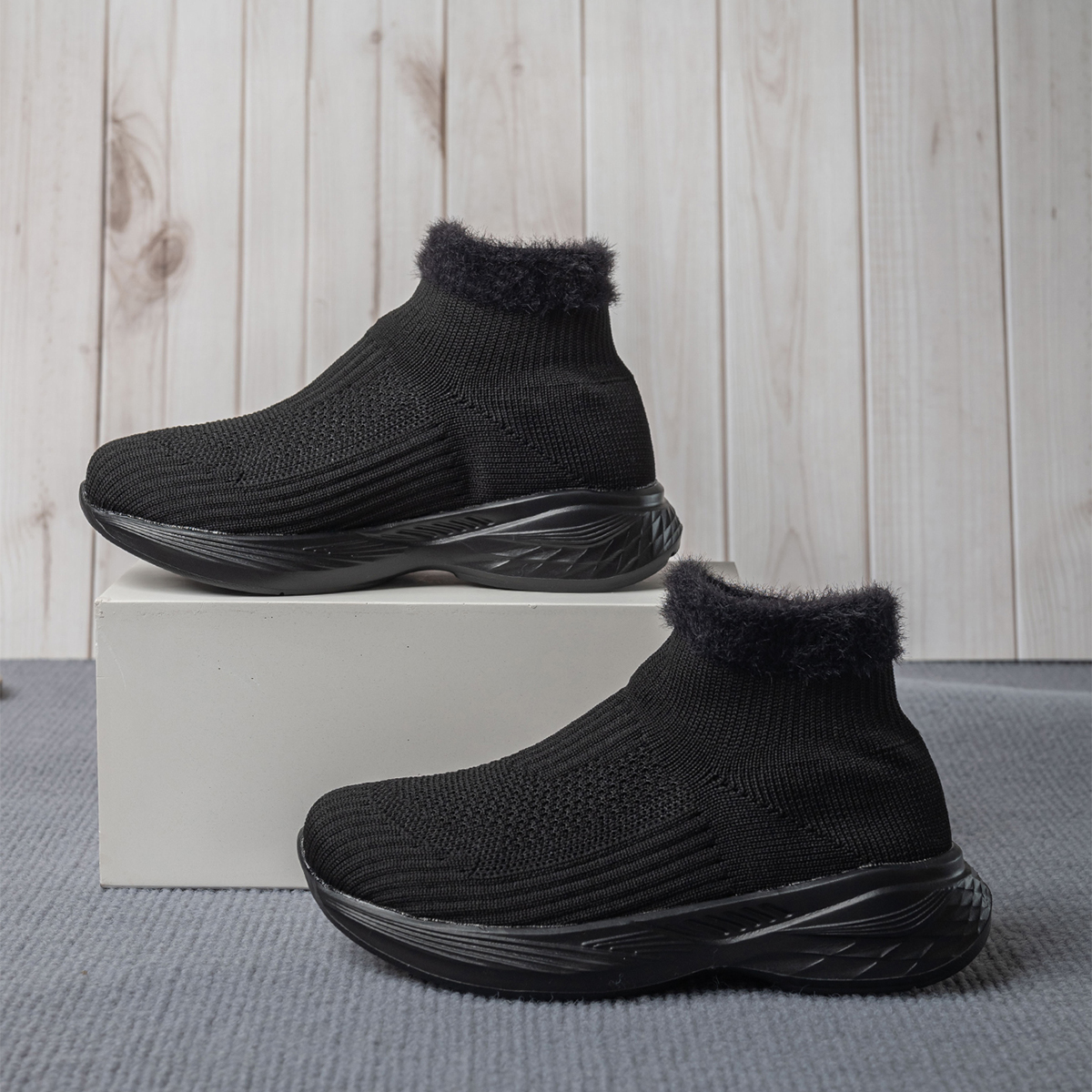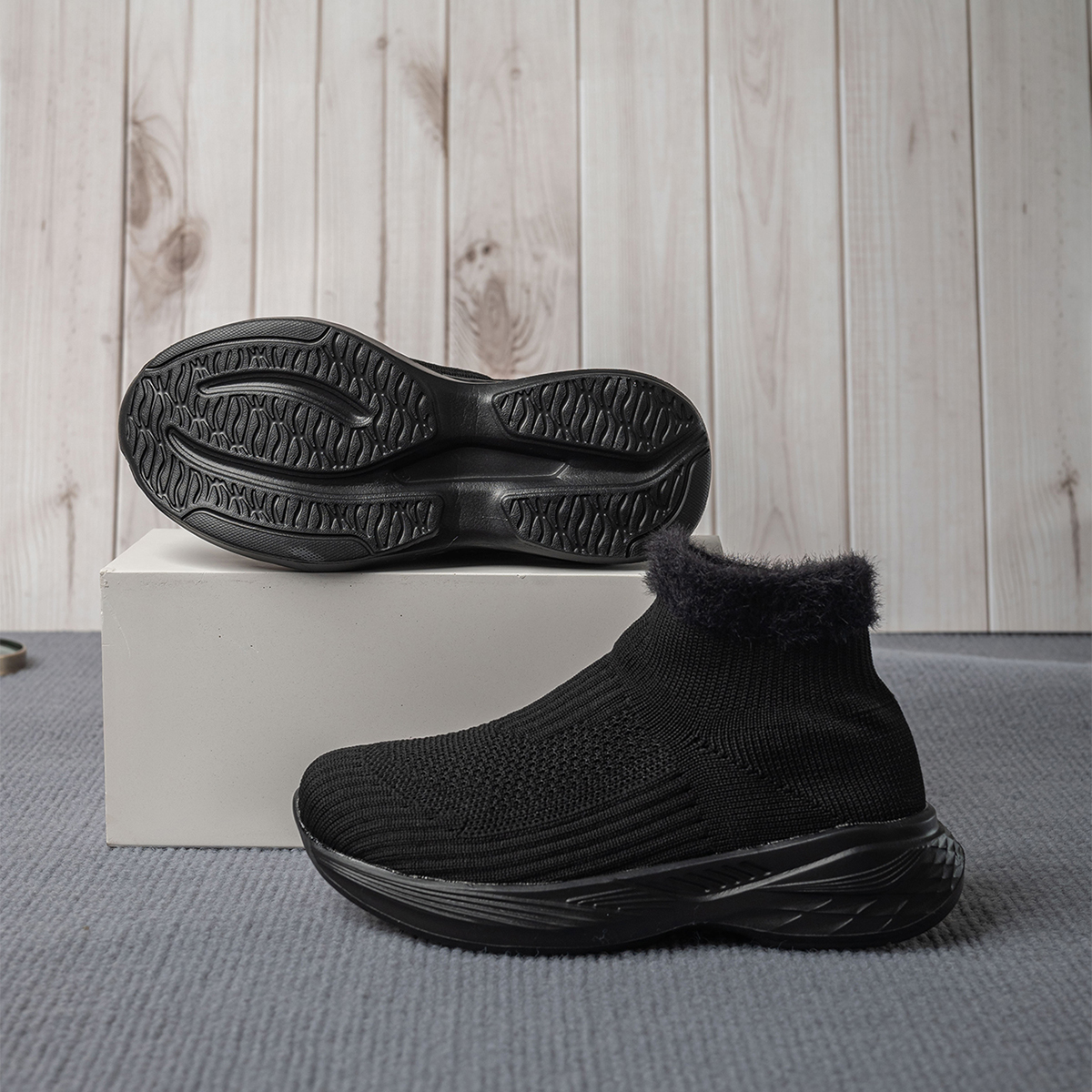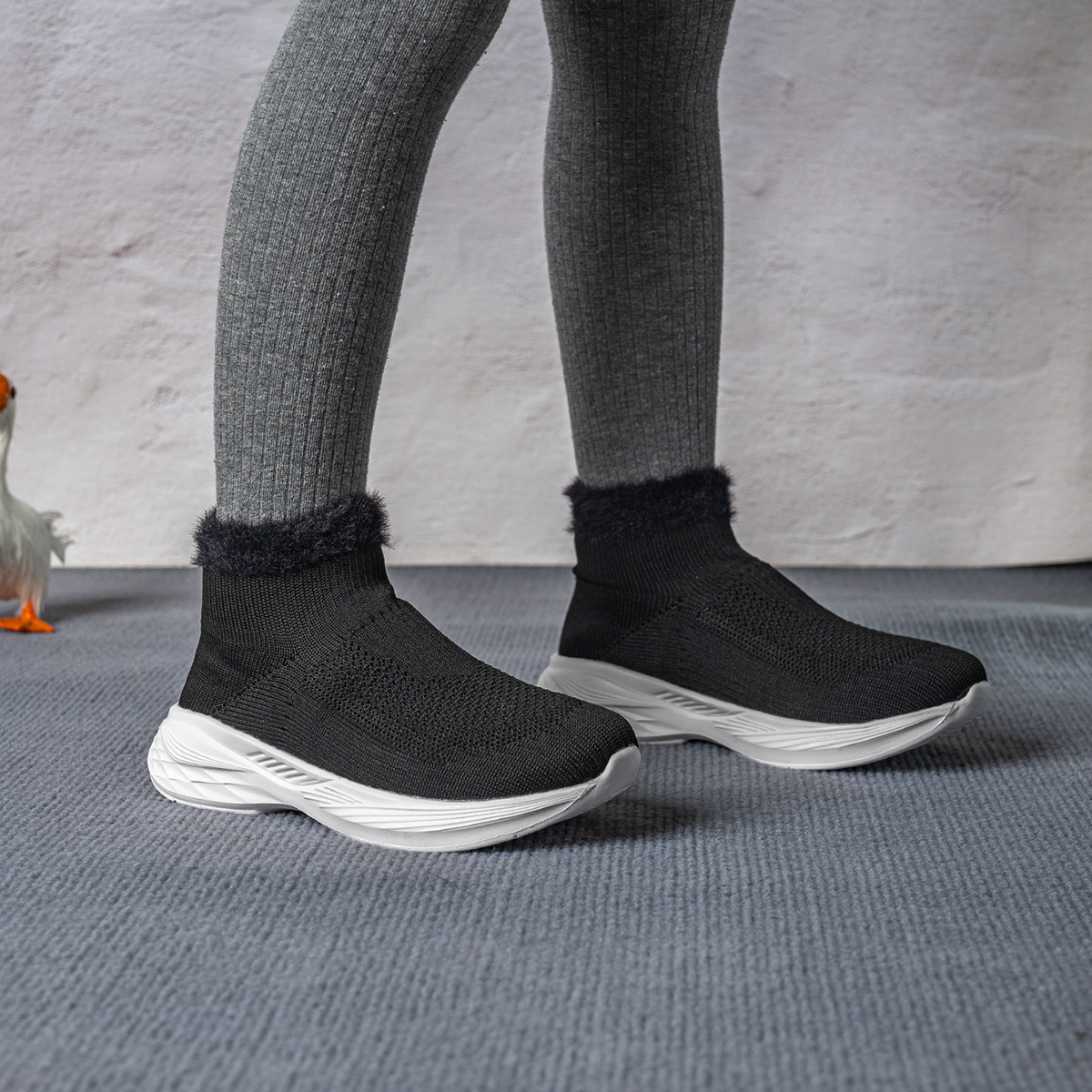 新款飞织内增高弹力袜子鞋高帮运动鞋