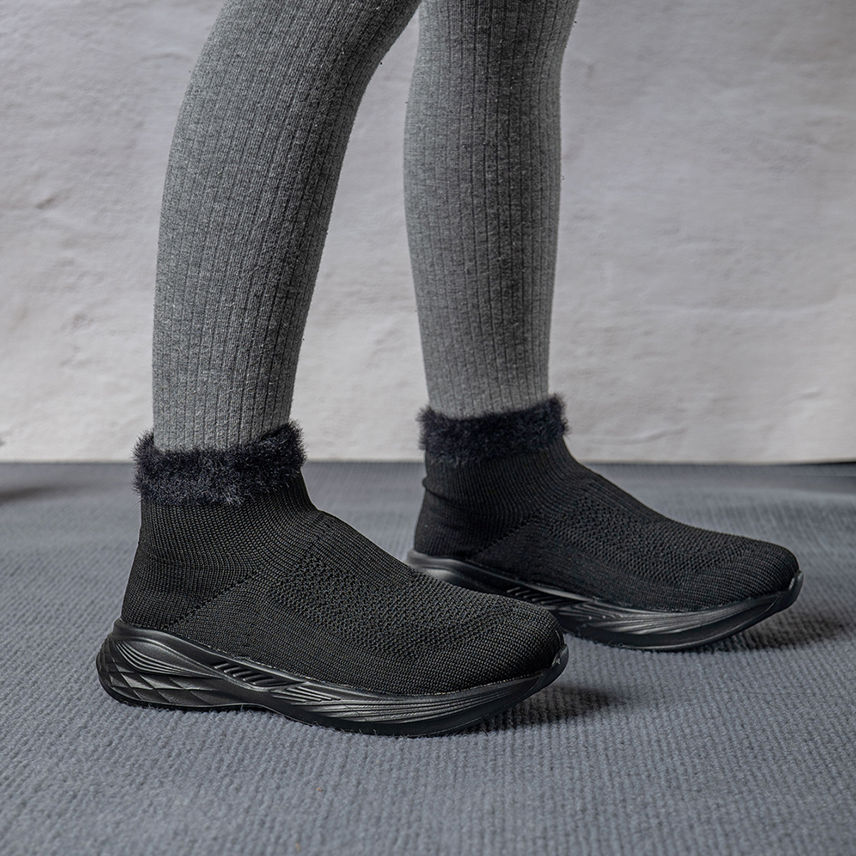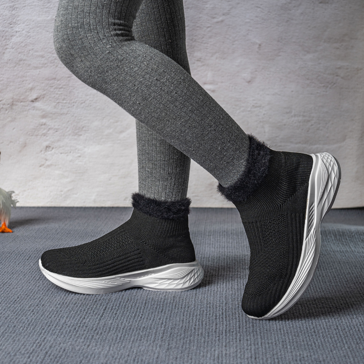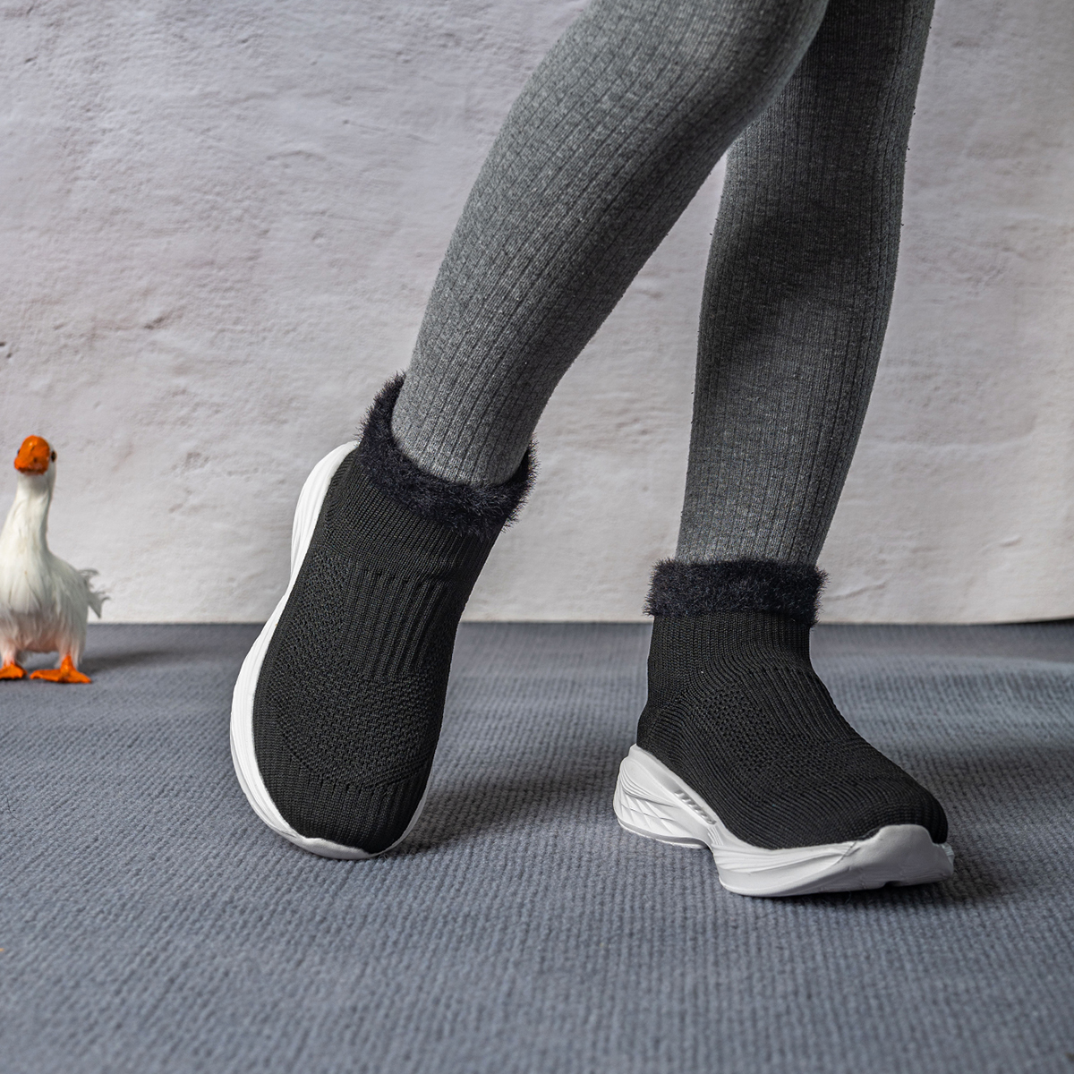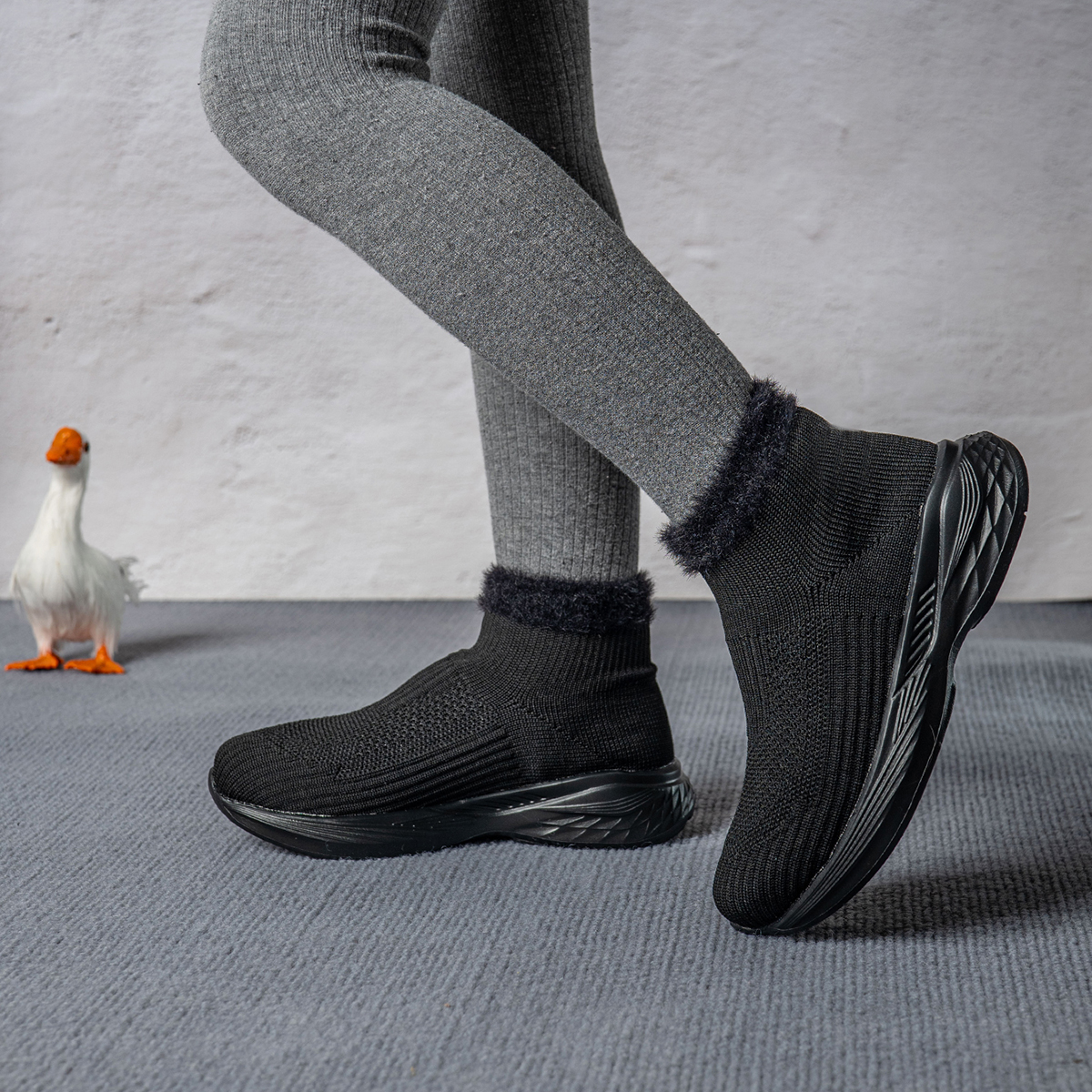 新款飞织内增高弹力袜子鞋高帮运动鞋