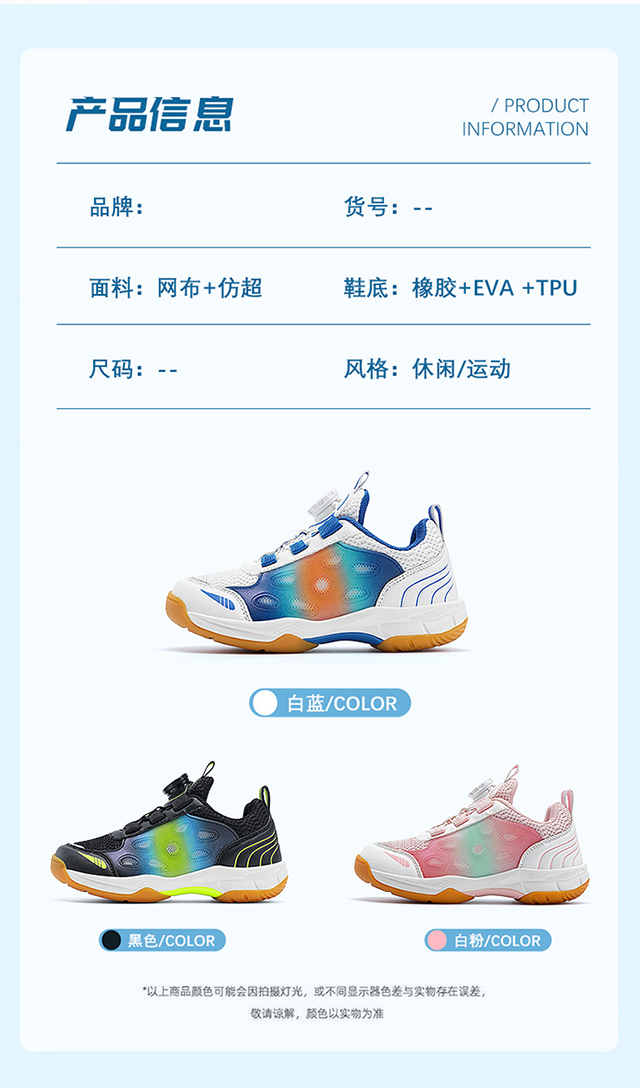 | 商品名称:儿童羽毛球鞋青少年乒乓球鞋男女童超轻减震运动鞋训练鞋 |