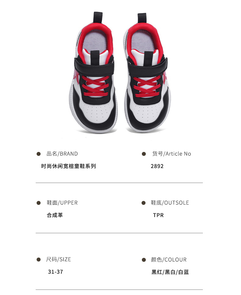 | 商品名称:悦足2892 新款皮面儿童时尚休闲运动板鞋31-37 |