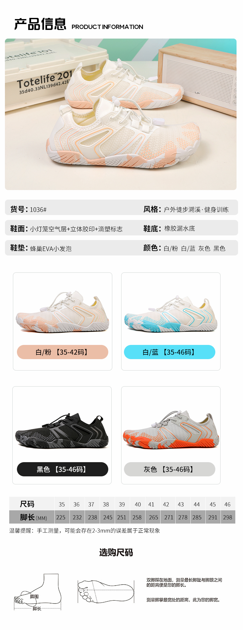 | 商品名称:悦足1036 新款跨境多功能溯溪游泳鞋瑜伽鞋35-46 |